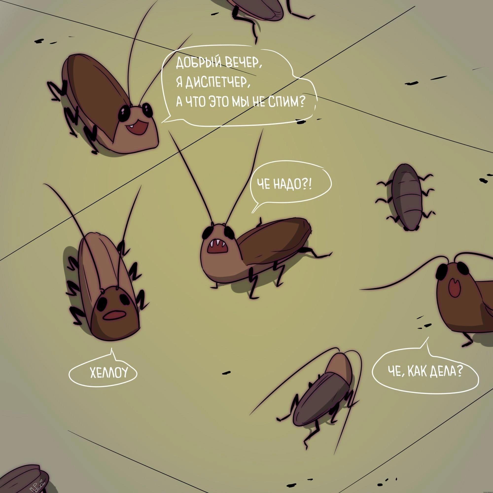 Это связано с реальными событиями. В общем-то, и пост этот я начала писать, потому что пришла к дедушке, за которым нужен уход, а там море тараканов, чуть ли не с потолка валятся. Эти пи*ры вообще не боятся. Мою посуду, капнула на столешницу, выходит жирный таракан и начинает при мне хлебать из лужи. Шугаю - не уходит. Тогда прибила. Изматерилась вся, потому что люто боюсь их. Но эти хотя бы обычного для прусаков размера...