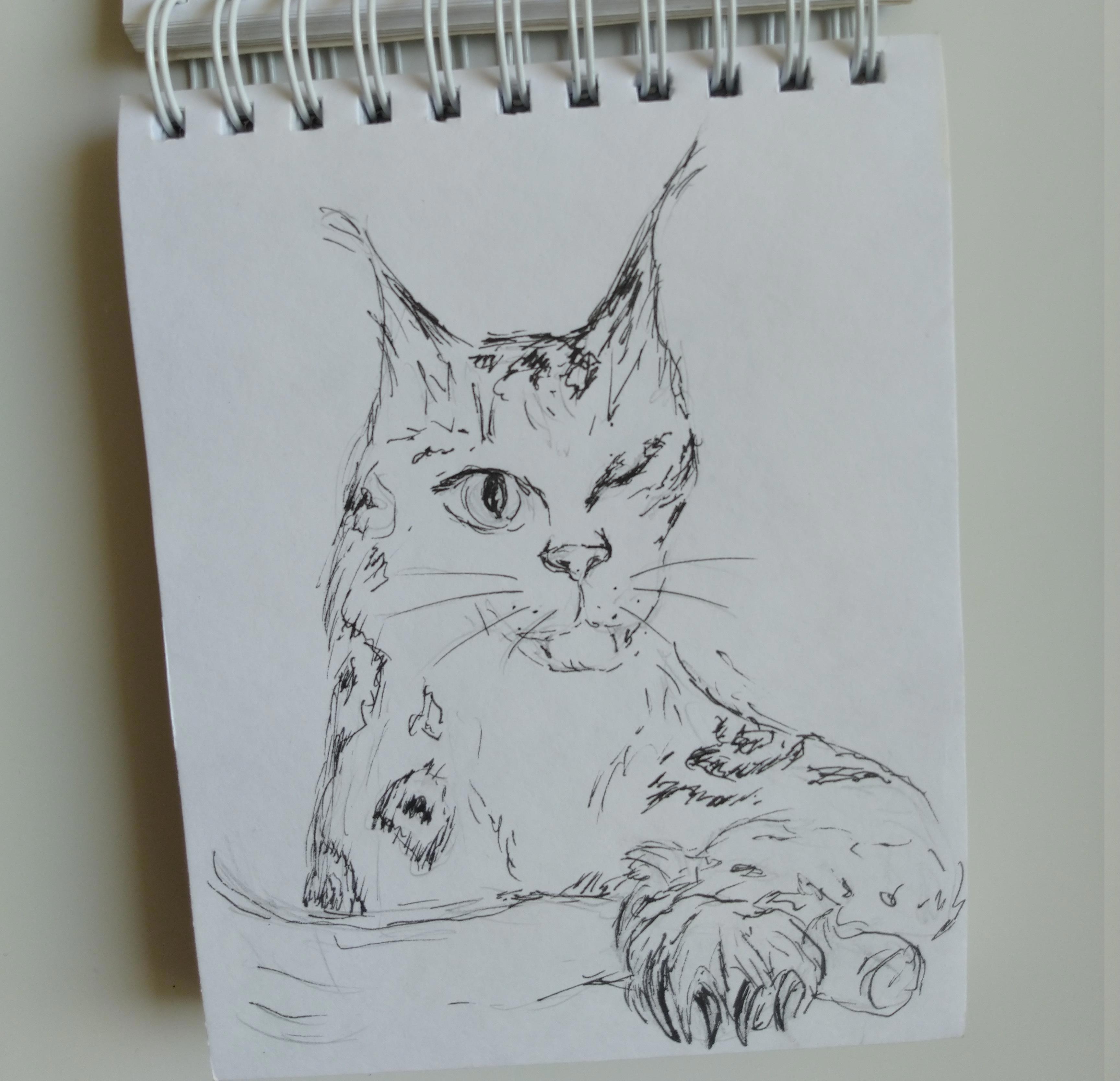 Первая попытка наскетчить собственного персонажа без рефов. Провалилась, ибо была забракована читателями со словами "не похож!" и "хто это?" ![]() | Вторая попытка, уже успешнее. За основу взята мордаха манула, дополненная пятнами ирбиса. Состояние не боевое, а сытое и умиротворённое.![]() |