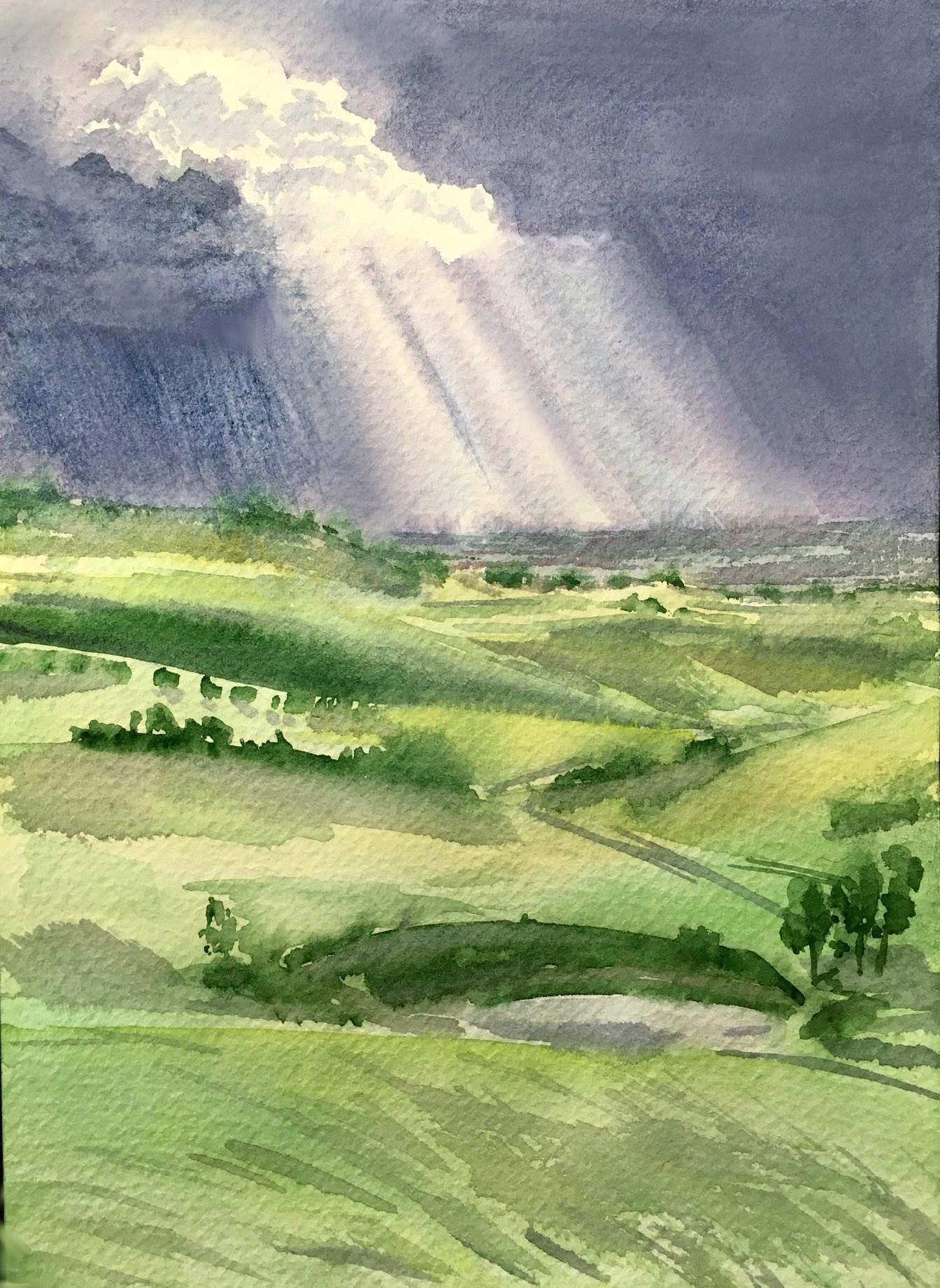 Яна Мазай-Красовская. Летняя гроза. Акварель.