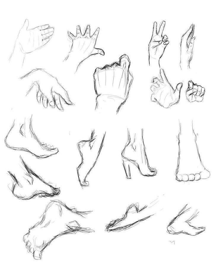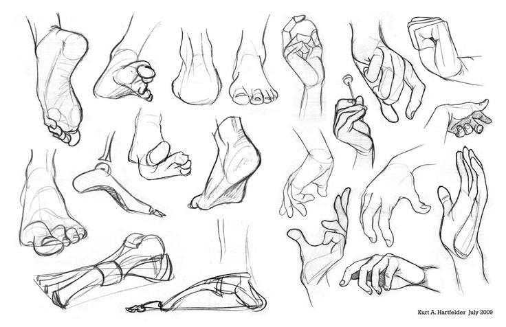 Вто я и решил добавить без всякой системы эскизы кистей рук, ступней ног и хвостов копчика. (Шучу. Хвостов не будет, или будет? :)
