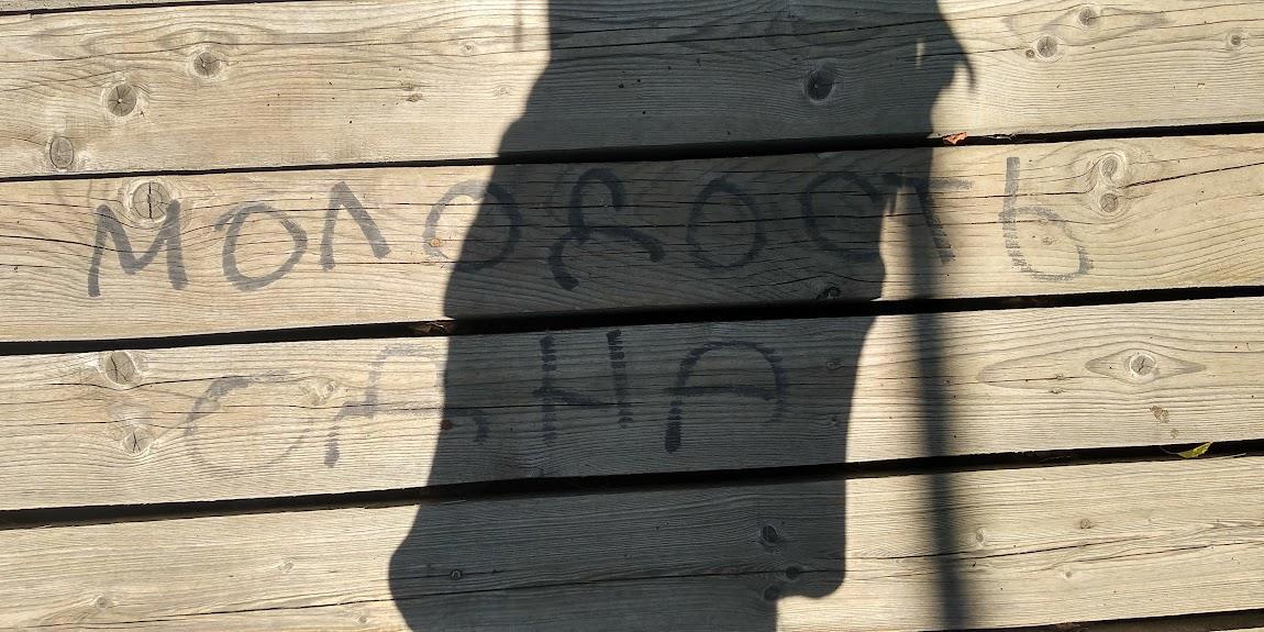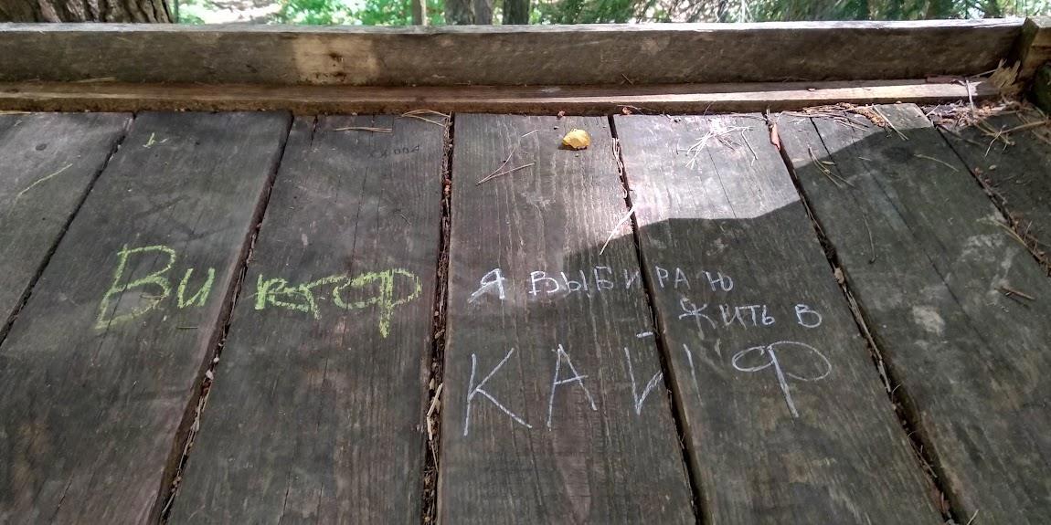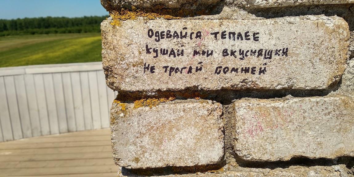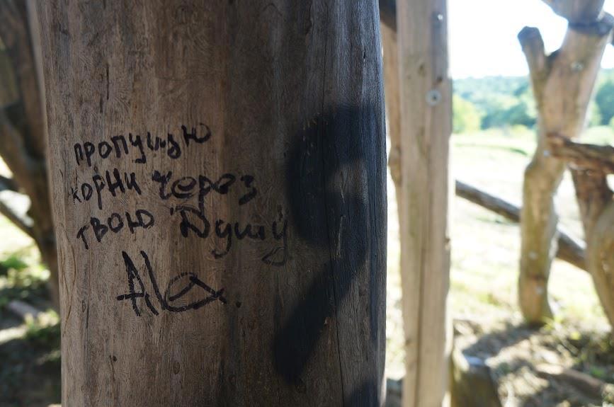 Ещё я развлекался тем, что фотографировал всякие надписи, которые посетители делали маркером в разных местах. Это “народное творчество” в 90% случаев скучно и банально, состоит из посредственных “Вася + Лена = Сердечко”, но иногда попадаются странные и прикольные надписи, которые могут стать названиями для моих будущих рассказов.