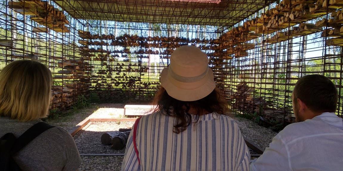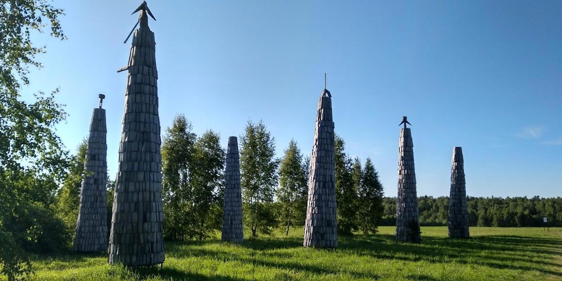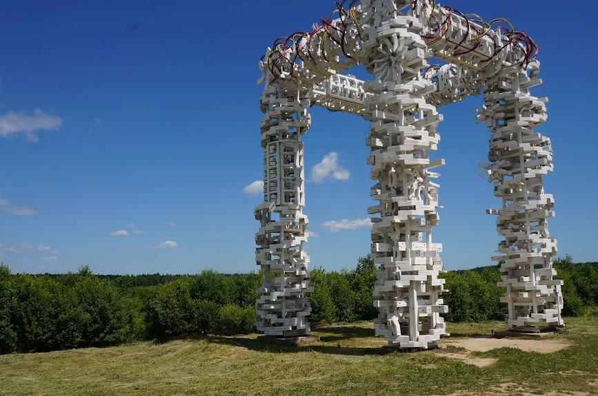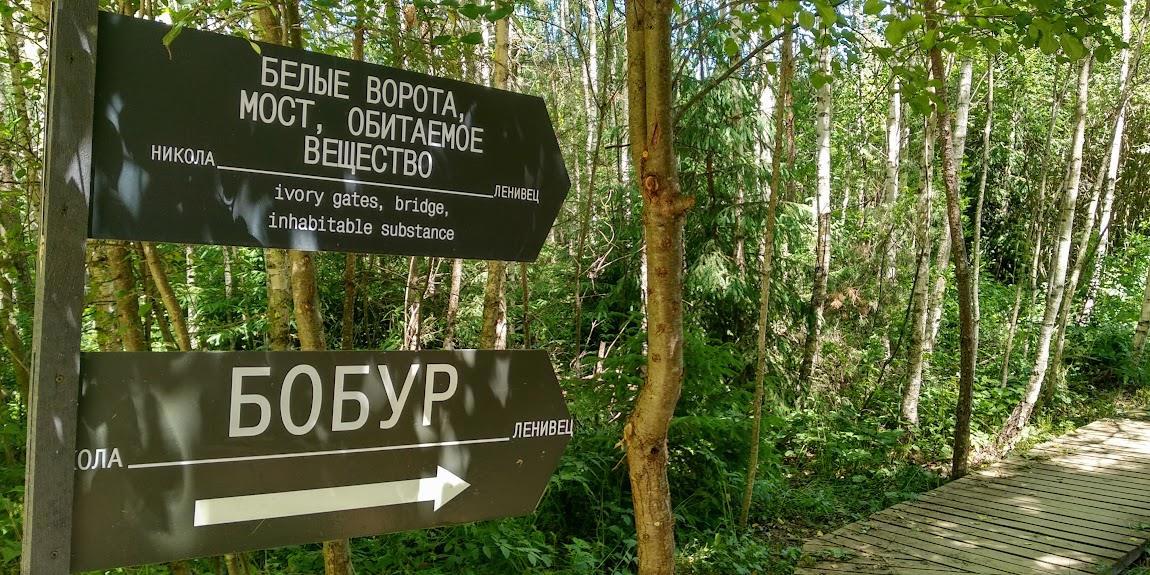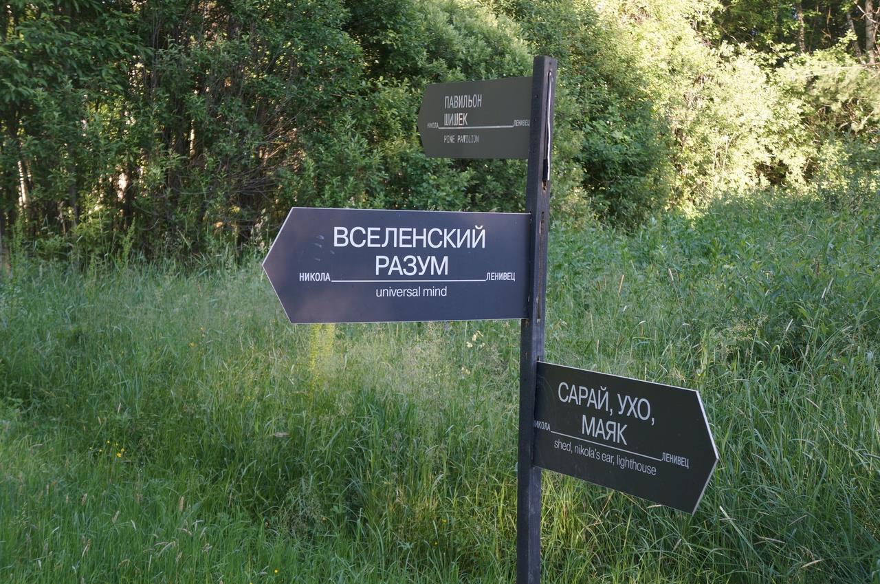 Кругом стоят указатели, на которых написаны названия арт-объектов. Многие из этих названий реально сносят крышу, а в сочетании с указателями, вообще возникает ощущение, что ты выпал из этой грёбаной реальности и непонятно где и когда находишься. Идёшь так по тропинке, и видишь стрелочку, указывающую к Вселенскому разуму. А вот тропинка, ведущая к Обитаемому веществу. А вот так можно пройти к Личной вселенной №5.