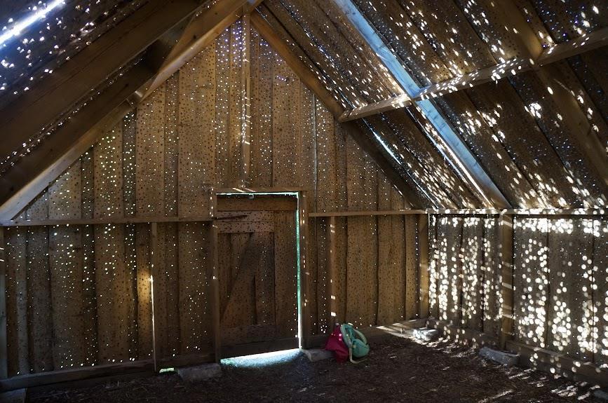 Когда мы подходили к этому сараю, сделанному из дырявых досок, я ничего необычного от него не ожидал. Но когда я зашел внутрь… Признаюсь честно, первые несколько секунд я громко матерился. У меня закружилась голова и началась сенсорная депривация. Это же пипец, этот сарай заменяет примерно половину всех наркотиков. Ты попадаешь в самый центр какого-то психоделического космоса. А снаружи - серая, непримечательная избушка без окон.