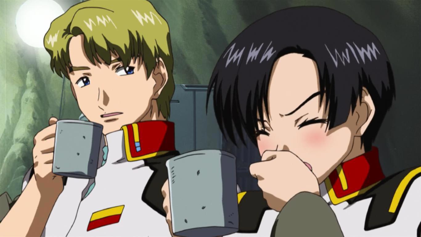 Напоследок добавлю приятное наблюдение - это одно из очень немногих аниме (да и вообще один из немногих фильмов-сериалов в принципе), где армия выглядит как армия, военные как военные, мобилизованные гражданские - как мобилизованные гражданские, кадровые офицеры как кадровые офицеры, и так далее. Даже когда ГГ по традиции откалывает изрядную глупость, ему устраивают полевой трибунал силами всех трёх выживших на корабле офицеров. И приговаривают к расстрелу. И тут же милуют, правда, так как воевать кому-то надо, но урок идёт впрок. Это вам не пощёчина Брайта.