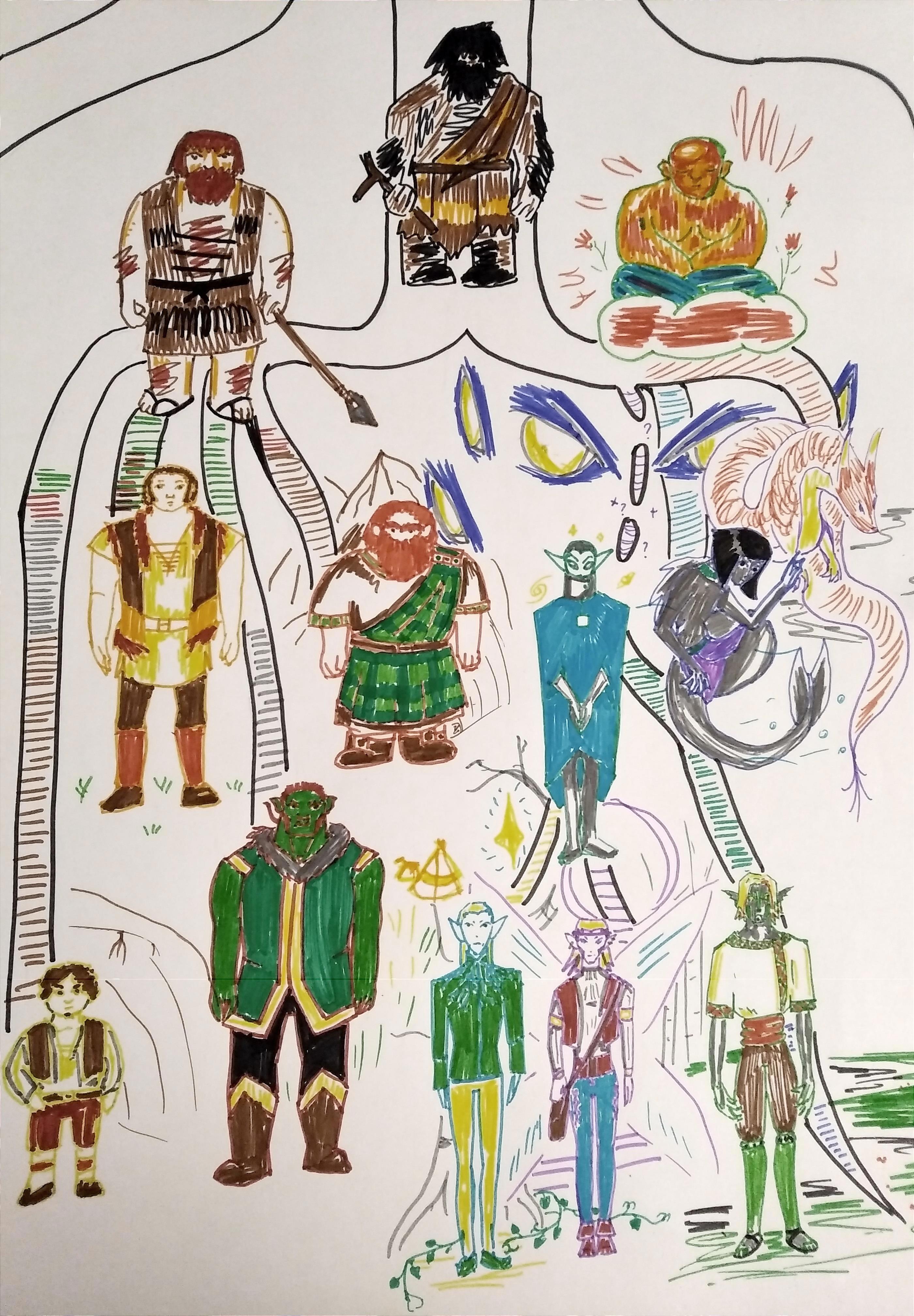 Автор: Майя СусловаКак продолжение всех описаний и ответ на другие посты Калейдоскопа, я заморочилась и сделала схему-древо по единственному миру, где есть подобное разнообразие рас. Почему схему-древо? Потому что по задумке в мире Аторны не было богов, которые облегчили бы мне задачу с происхождением.