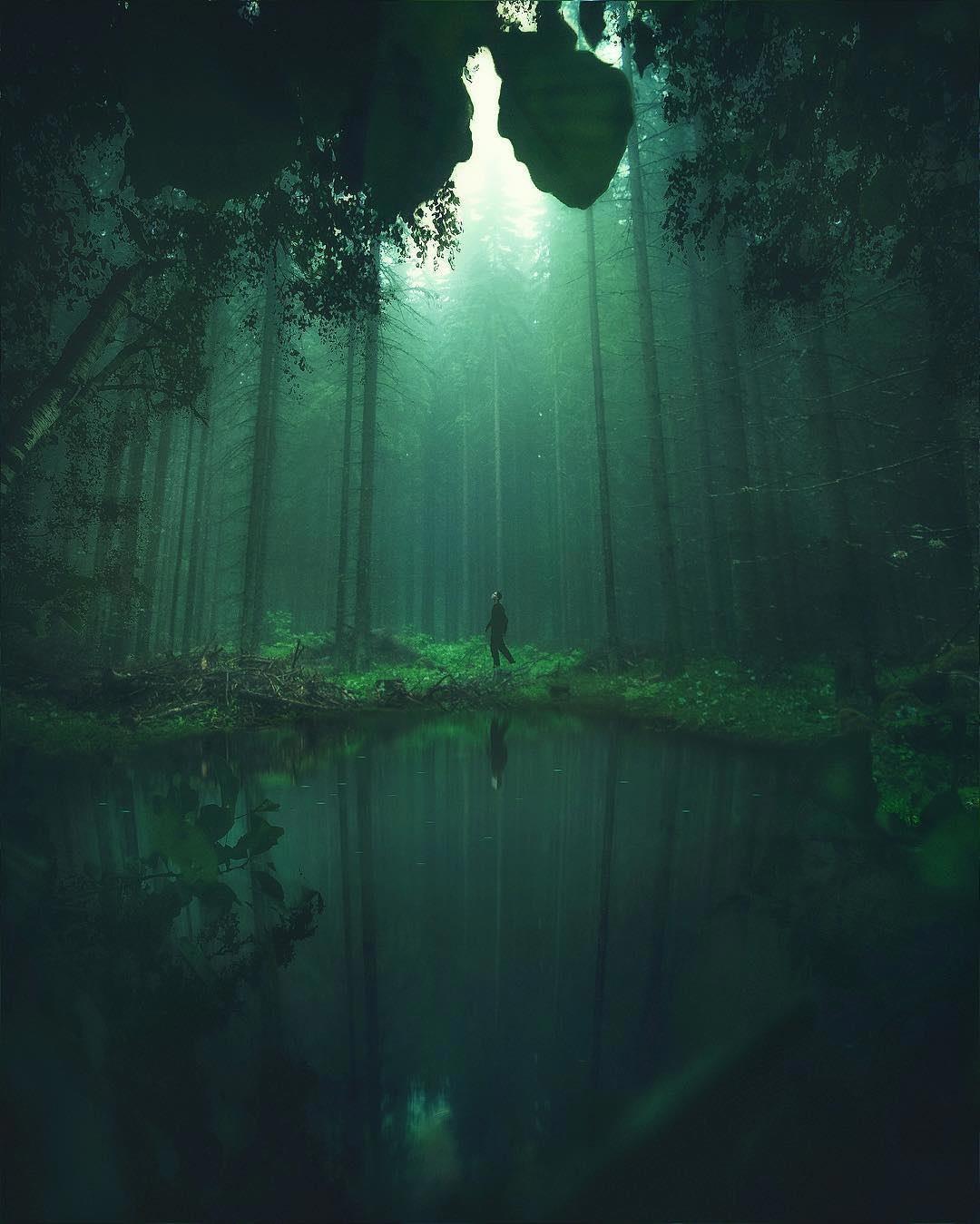 Внезапно всё вокруг преобразилось. Две девушки стояли посреди соснового леса. Высокие деревья тянулись к низкому небу, стояла такая глухая атмосфера, что закладывало уши.