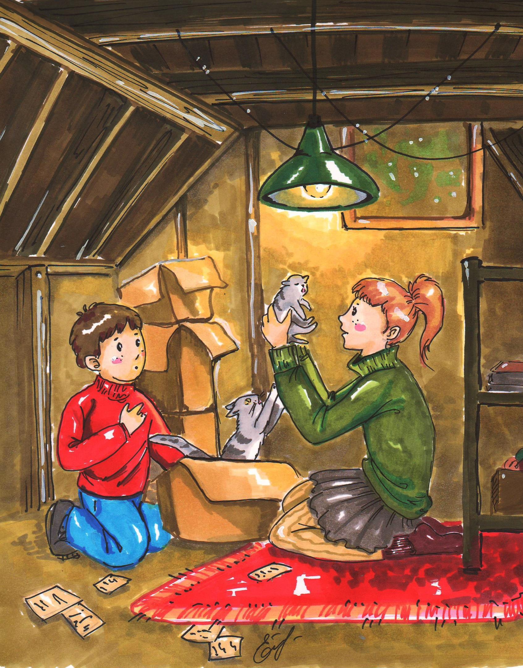Кошка нашлась минут через десять. Сначала на верхней полке стеллажа, среди коробок со всяким хламом, в свете фонарика блеснули красным два круглых глаза, потом раздалось короткое встревоженное «мяу!», и под ноги к детям спрыгнула изрядно отощавшая Фанни. Наверху, в коробке, тут же зашлись отчаянным криком котята. Кошка, нервно дергая хвостом, замерла в раздумье, но голод пересилил. Да и Макс знал, чем приманить — уже разрывал пакетик, подзывая кошку.