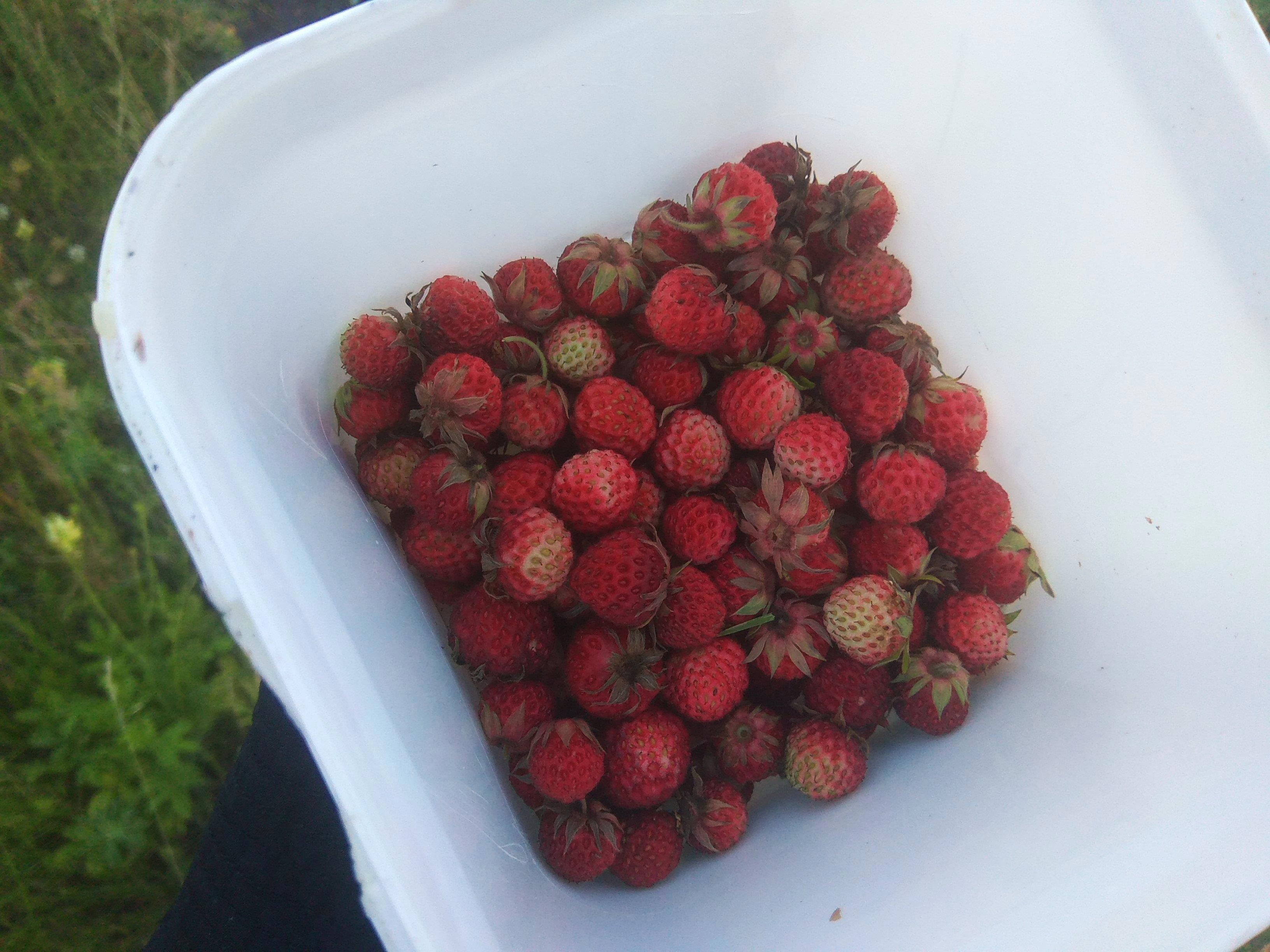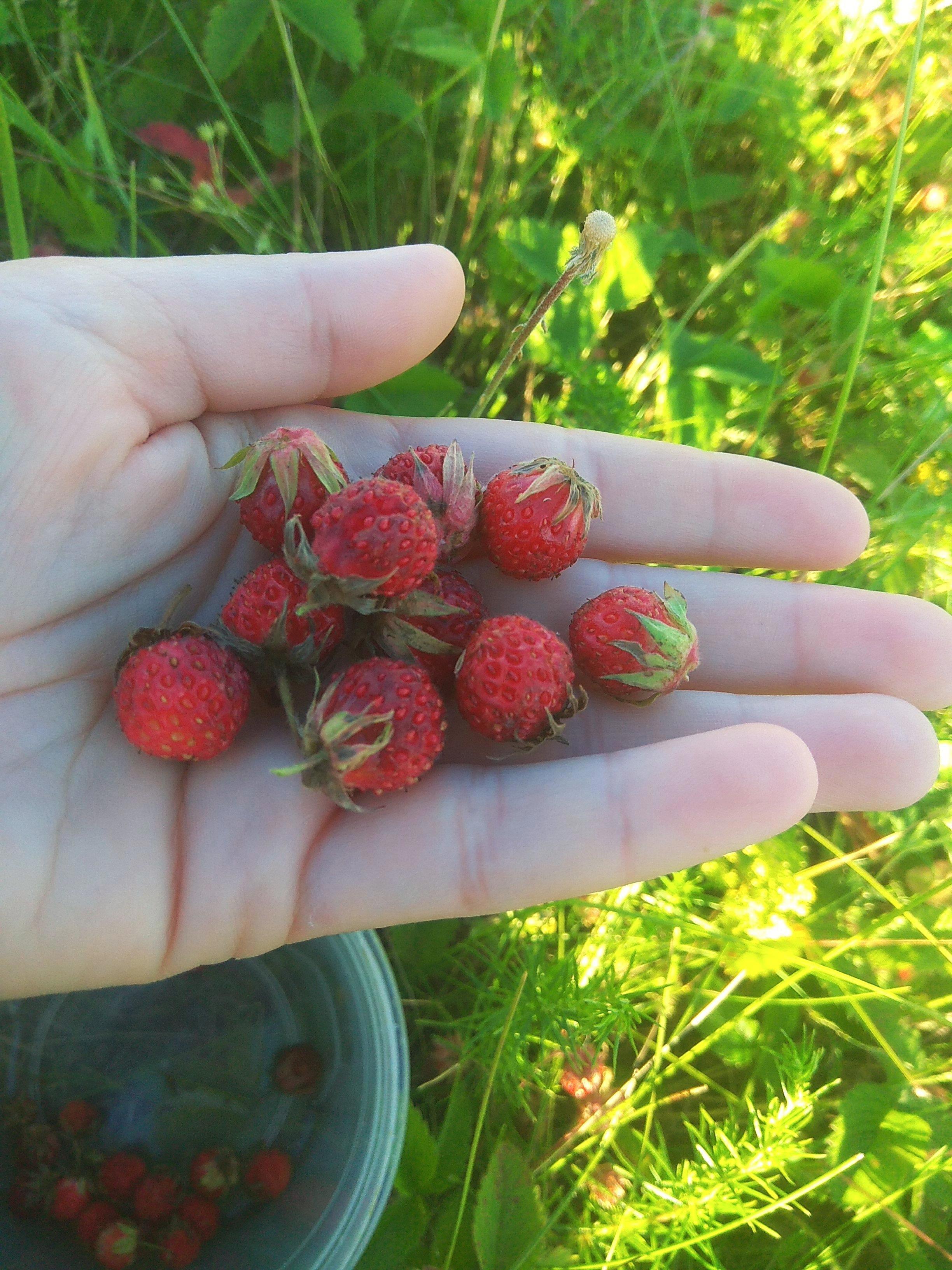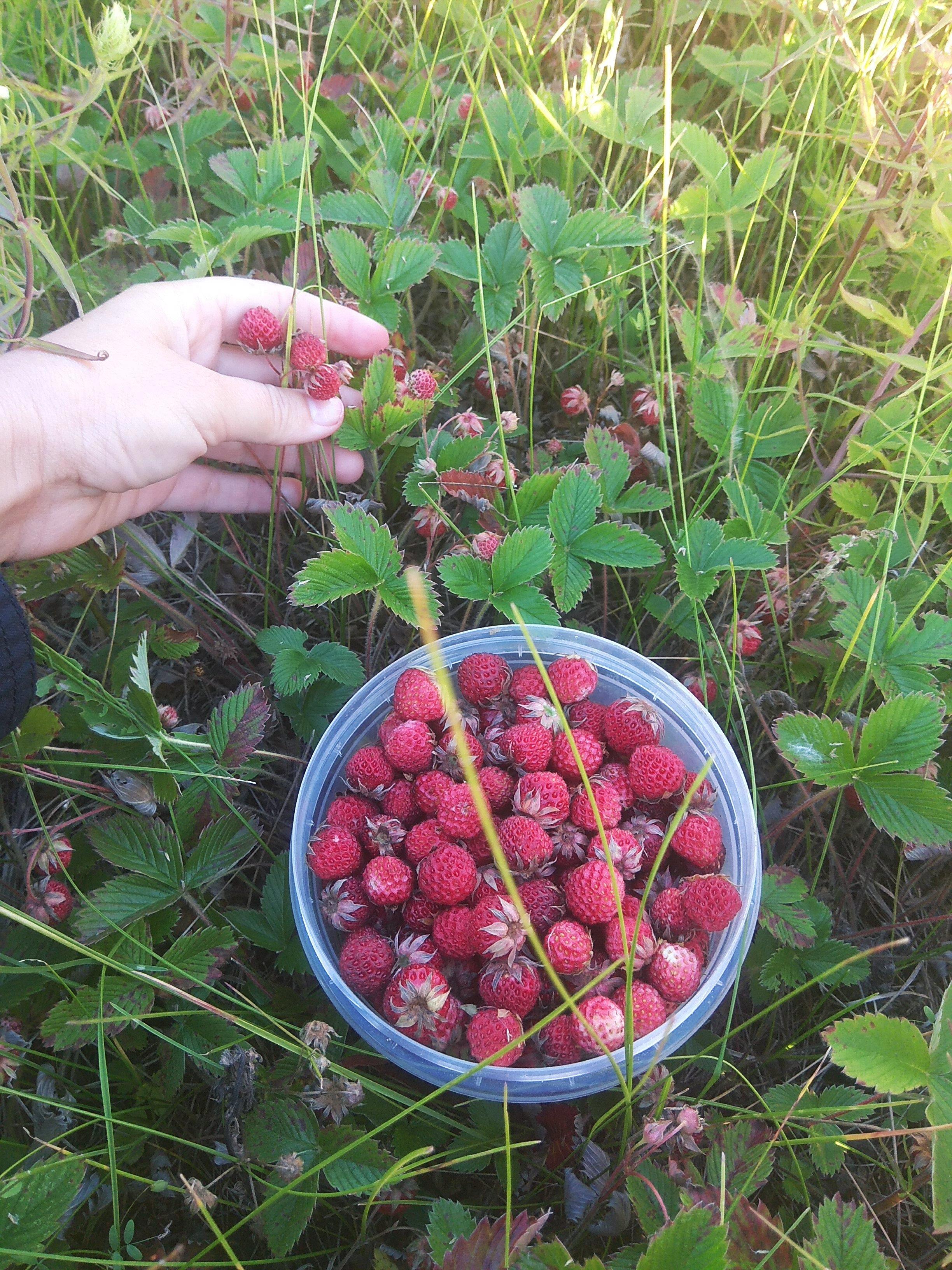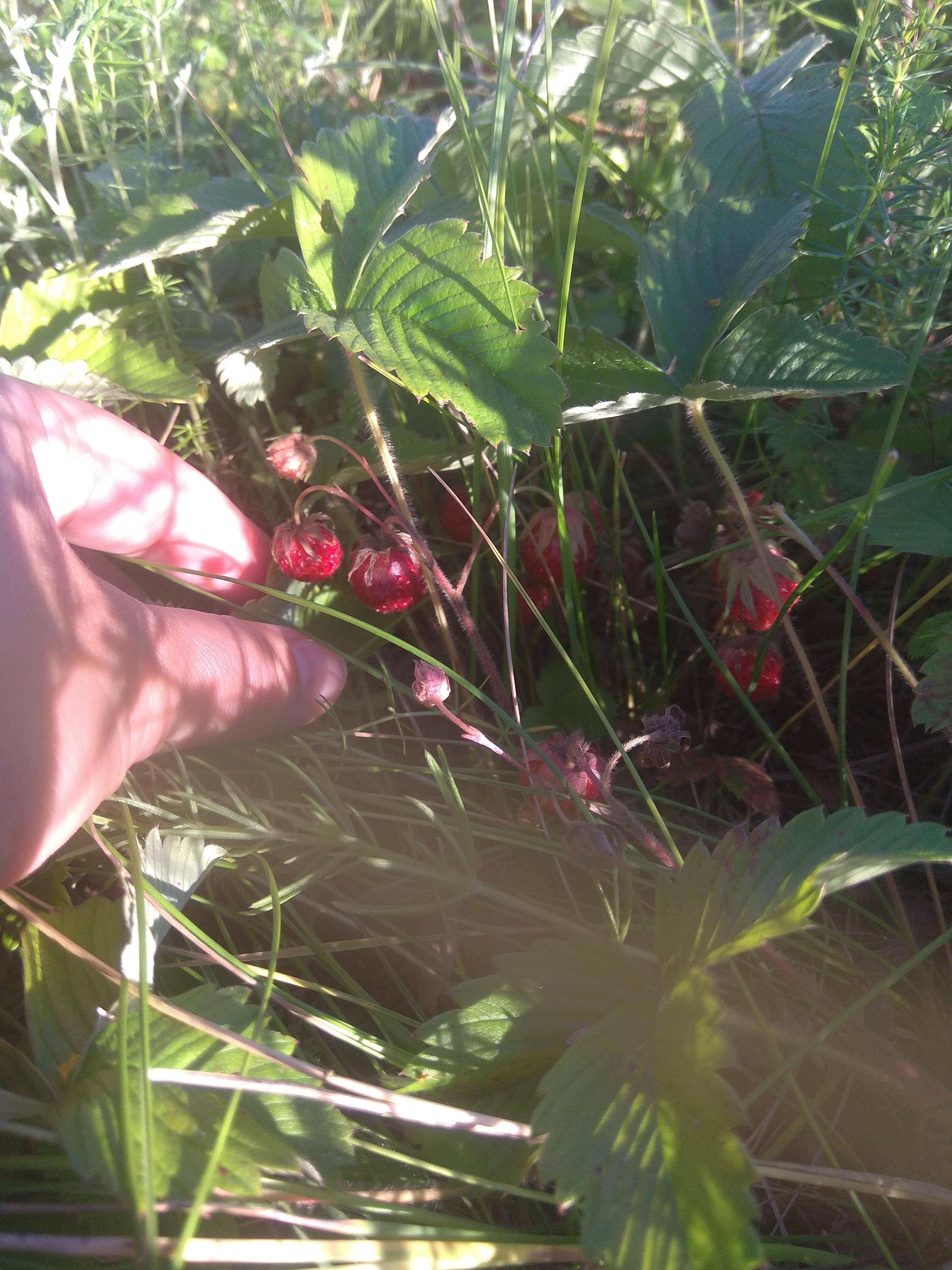Вчера выдался вечерок, выбралась по ягоды. Вообще, земляника растет даже напротив моего дома через асфальт. Просто там когда-то планировалось продолжение улицы, но потом стройку забросили, и вокруг возведенных фундаментов нескольких домов растет себе трава, среди которой и земляника. Она же, как сорняк растет. Но собирать ягоду у дома не интересно и неэкологично. И я отправилась за поселок. Есть там у нас чудесный луг с шикарным разнотравьем. Земляника на нем тоже отличная!