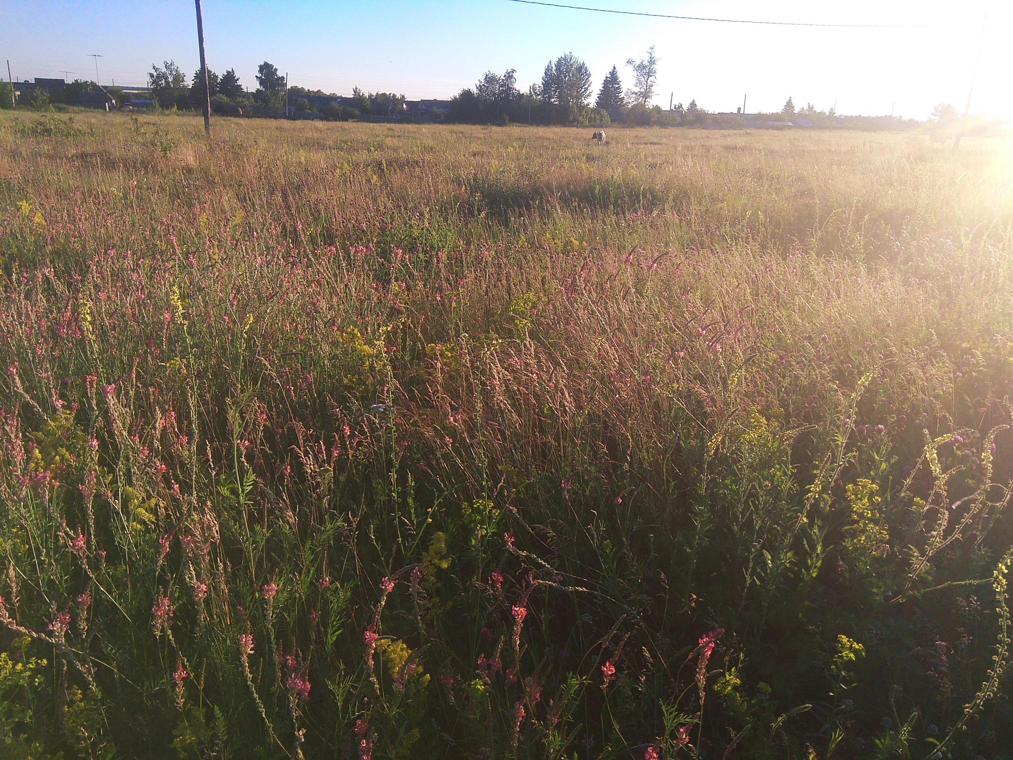 Позавчерашний дождь разогнал всех ягодников. Ну а я вообще только раз выбиралась за земляникой еще в самом начале, когда она начинала спеть на возвышенностях. Сейчас же в общей массе ягода годится для сбора, как никогда. А аромат стоит на лугу -- не описать словами! Пьянящий, сладкий, стойкий. Мало того, что дико пахнут ягоды, так еще и травы сейчас цветут сплошным ковром!