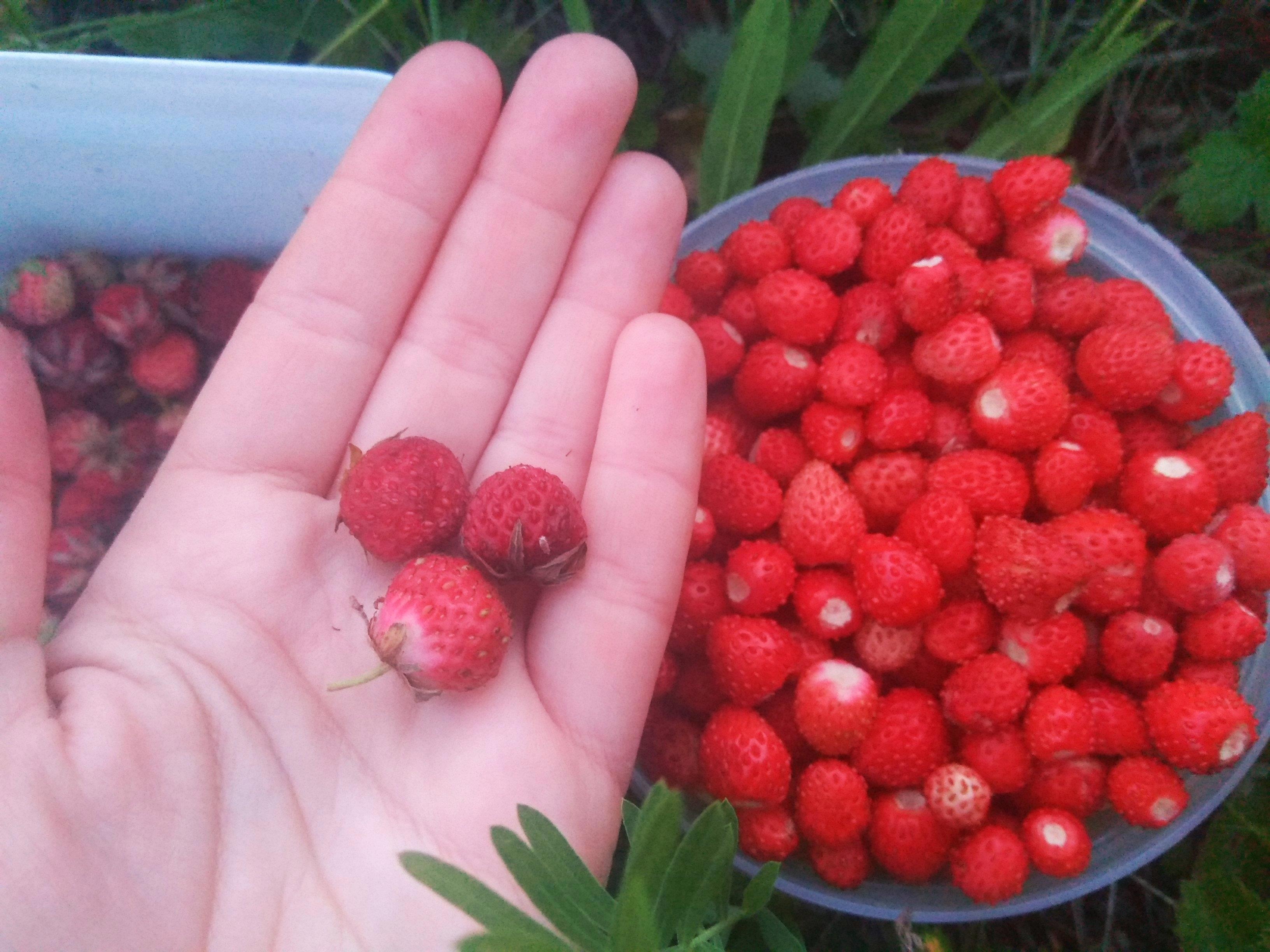 Есть у нас в саду земляника лесная. Она намного нежнее луговой, слаще, и не имеет такого ярковыраженного специфического запаха, (который, кстати, не любит моя мама, а потому луговую землянику не ест). Собирать ее сложнее. Если эту рвешь себе да рвешь, а дома уже обрываешь черенки, то лесную нужно брать осторожно, по ягодке, чтобы не раздавить случайно. Одно малейшее неправильное движение и в руке твоей -- земляничный джем.