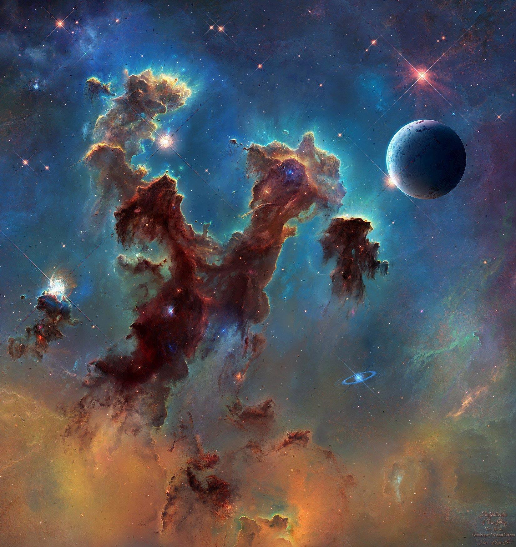 N.B. Но сегодня мы поговорим о фантазиях художников в мире космоса. Здесь собраны некоторые такие работы. В большинстве случаев, найти имена авторов мне не удалось. Давайте просто получим удовольствие от созерцания красивых фантастических картин и мысленно скажем авторам спасибо за их талант :)