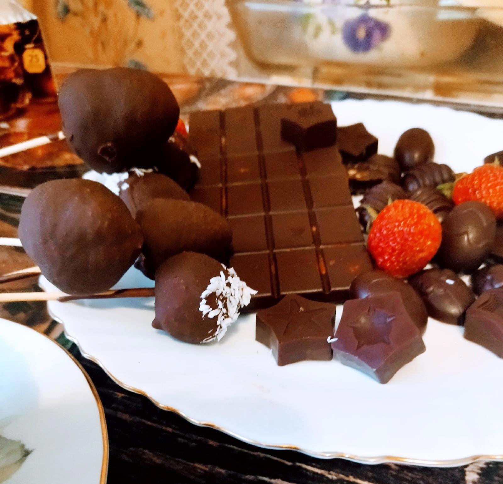 Наделала клубнику на шпажках, конфет с арахисом и осталось еще на плитку шоколада с кусочками клубники. Когда родители приехали в гости, были в восторге. Сделайте дома полезную сладость, это и правда легко и не сравнить с магазинной))
