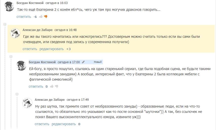 Будучи историком по образованию, я очень щепетильно отношусь к подобного рода "шуткам". К тому же, если бы не вывел я товарища на пояснения, то вряд ли кто-то вообще понял, что он шутит. Ну и ещё хочется добавить, что тот самый