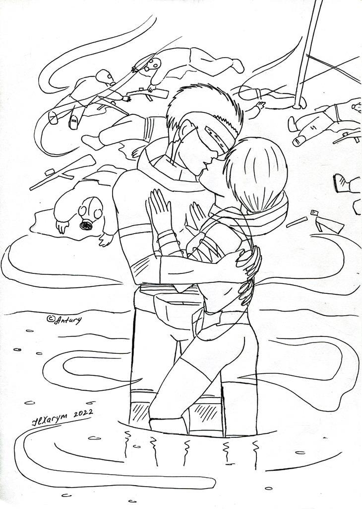 На рисунке – разрушители Эви и Хаттори в облаке нервно-паралитического газа зарина (роман «Эльксарим. Дети-киборги. 2», прорыв обороны острова Крон):
