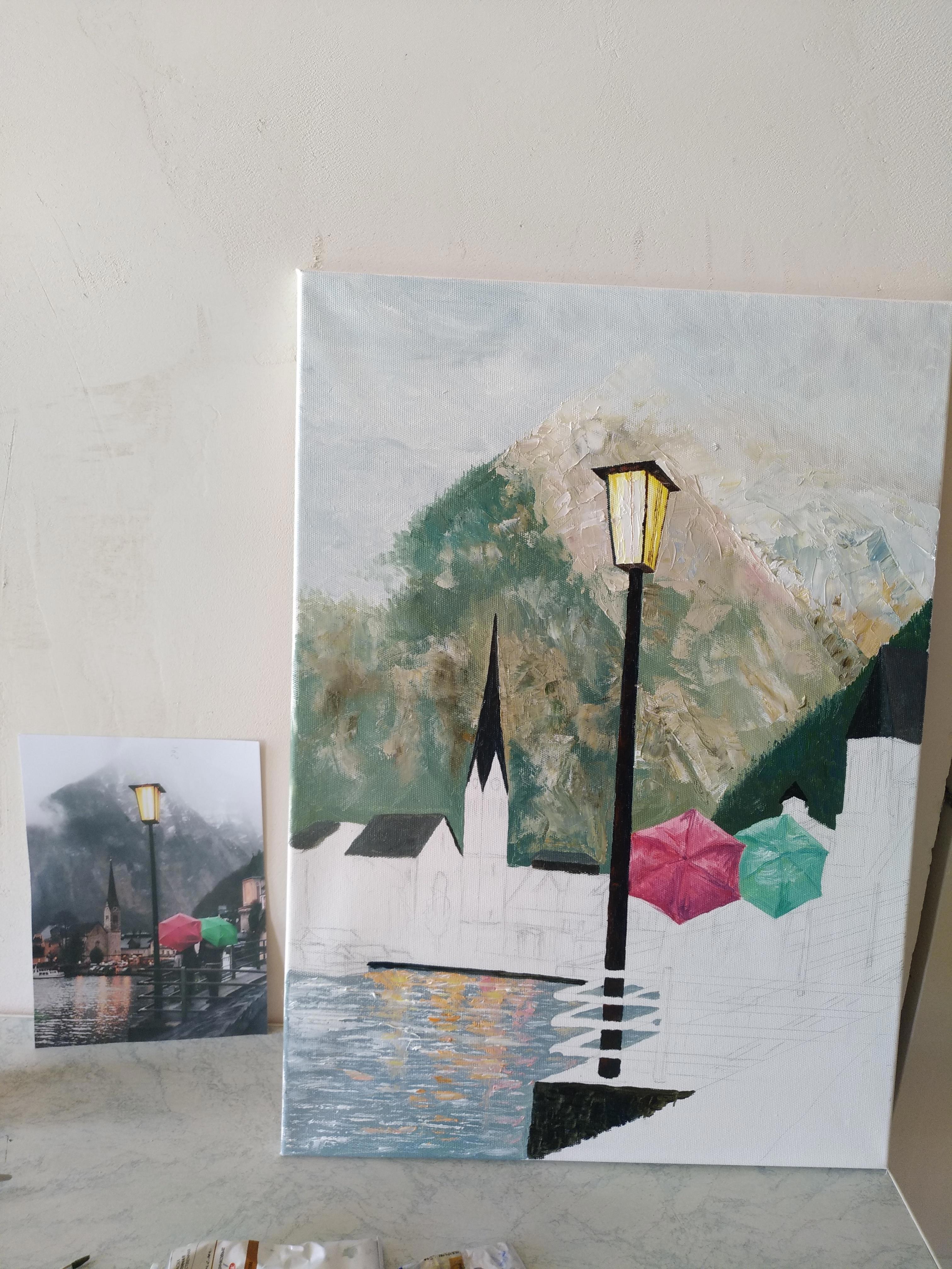 8. Что ж, пора заканчивать. Дописываем мелочи, добавляем дымки и вуаля: знакомьтесь, Гальштат, Австрия