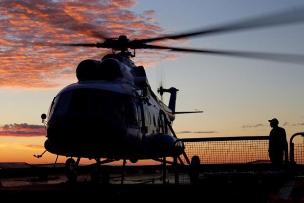 Вы бы видели, как железная машина грациозно зависает над палубой! Грозно стрекочет, удерживаясь на одном месте, поднимая водную взвесь, ероша волосы непослушному зрителю и бросая в лицо колючие капли. На подвеске команда сноровисто закрепляет столь необходимые грузы — и вертолет закладывает дугу, уходя к берегу вдалеке.