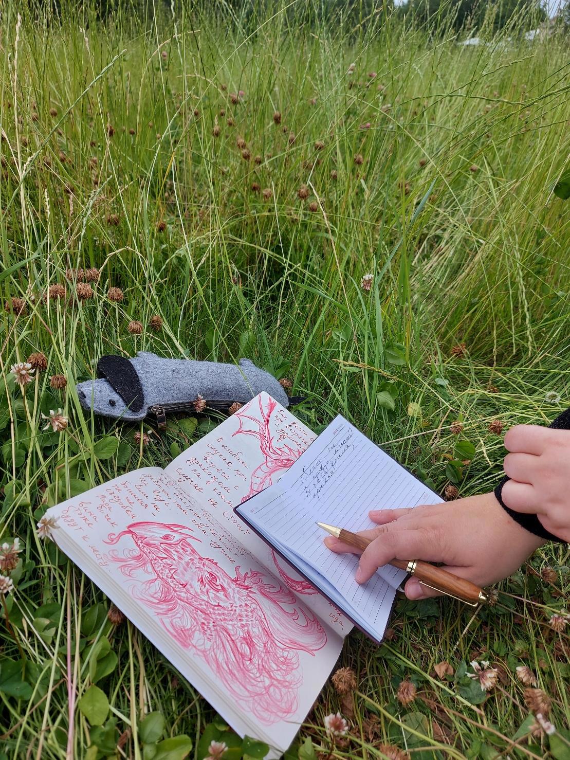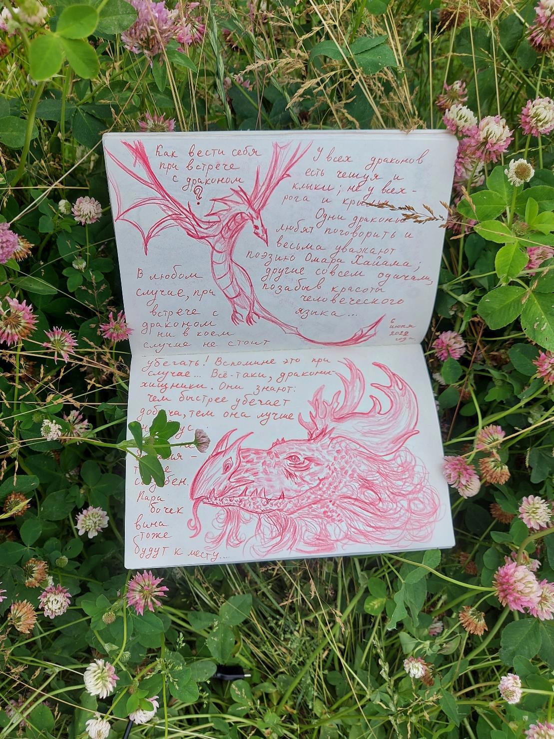 Впрочем, кто знает! Может и залетают, порой, свернув не на том повороте млечного пути. Разворот я рисовала цветным карандашом по мотивом одной классной книги про драконов. Про неё расскажу вам в другой раз...