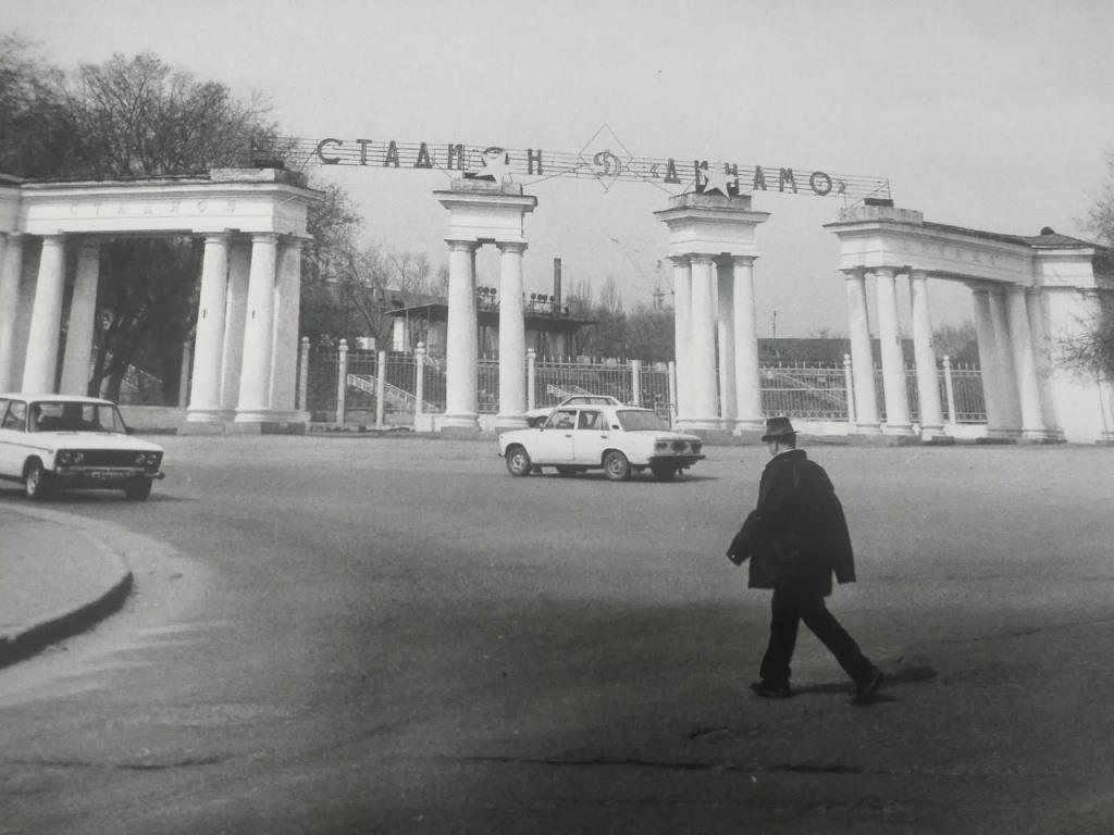 Это один из "проколов" под железной дорогой, построенный вместе с ней ещё в девятнадцатом веке: снизу улица Володарского (бывшая Спасская), сверху, за полотном, она уже Кубанская. Слева, за полотном, проглядывается какая-то колонада. Присмотримся поближе на фото девяностых (судя по попавшим в кадр не только двум классическим "Жигулям", но и "Ладе-Самаре") годов. Да, это стадион "Динамо":