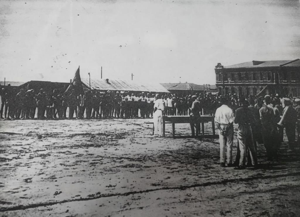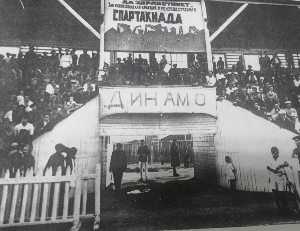 Точнее, главный вход на него. Не все знают, что это первый царицынский стадион. Он был построен жителями Города на субботниках и открыт 1 мая 1924 года. Первое его название "Красный стадион". В 1930-м стадион был передан спортобществу "Динамо". И в до-, и в послевоенное (восстановленный) время несколько раз расширялся, постепенно превращаясь из футбольно-легкоатлетического стадиона в настоящий спортивный комплекс - из Википедии: