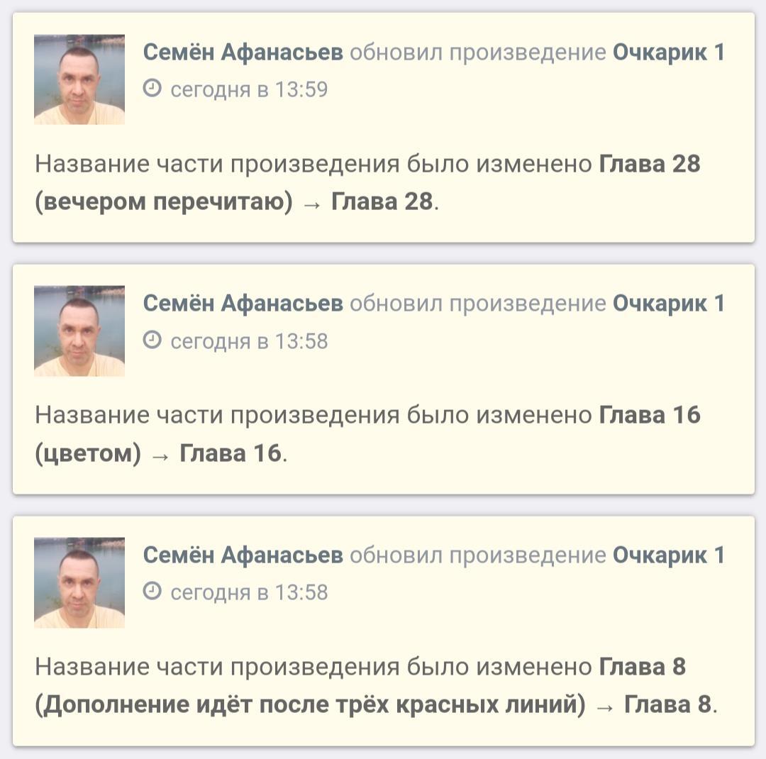 Автор: Андрей ОреховБожечки, как говорят в таких случаях в народе - наверное в лесу медведь сдох! Я поражён до глубины души, ранен в самое сердце, ослеплён великолепием происходящехо, разбит, раздавлен, шокирован, и пребываю в состоянии глубочайшего фалломорфирования. А всё от осознания того факта, что господин Афанасьев всё-таки редактирует оглавление своих творений. Хотя бы иногда.