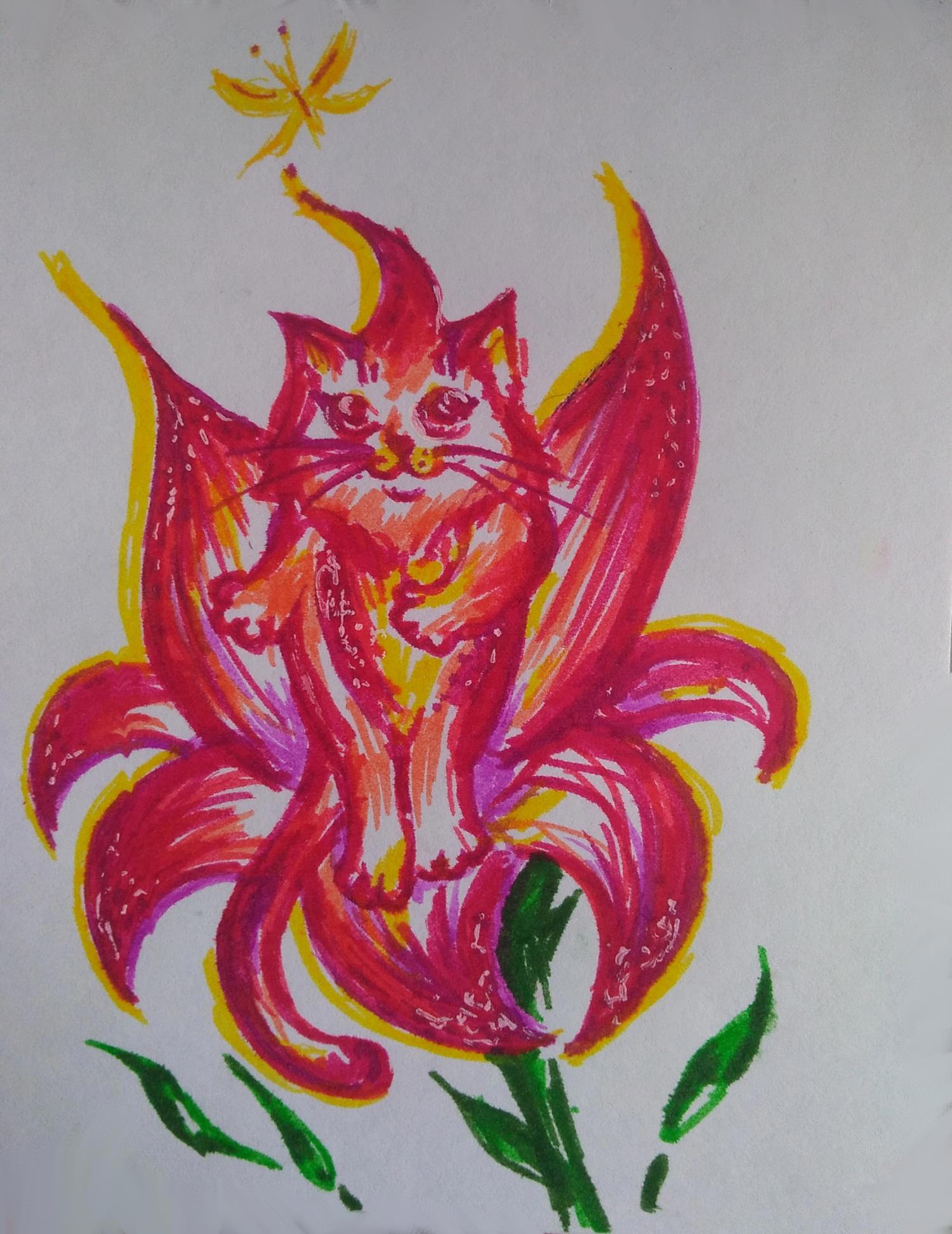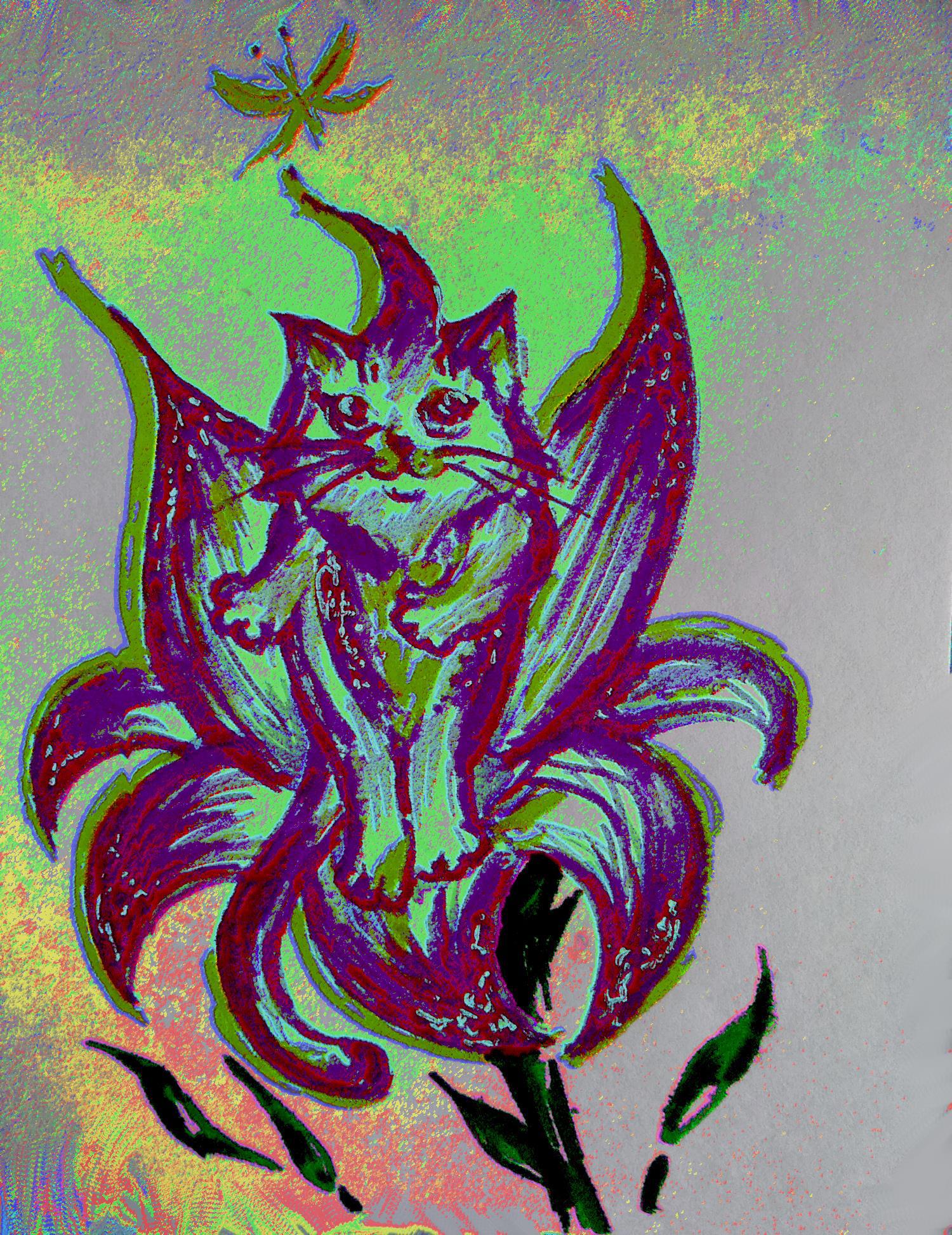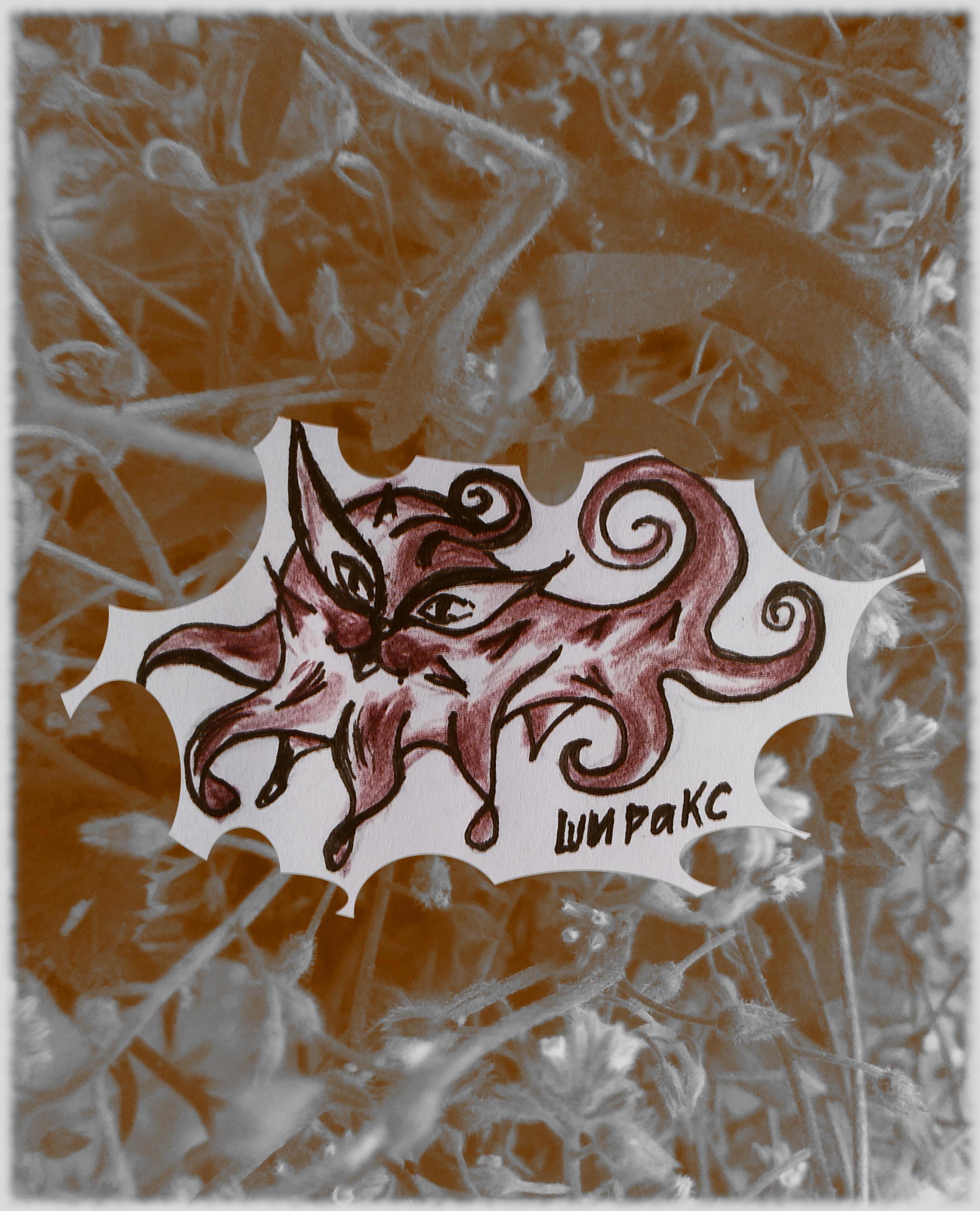Были ещё попытки нарисовать котоцветочек (см. ниже), но отмела оные в виду их милоты, не соответствующей непростому характеру Ширакса. Избавиться от него так просто не выйдет: может длительное время жить на свете и воде, синтезируя самостоятельно необходимые вещества, способен перемещаться во времени на небольшие отрезки (до получаса) и обладает зачатками психокинетических способностей, которые весьма успешно развивает.