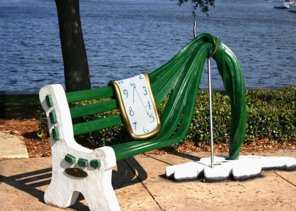 N.B. Скамейки, как оказалось, тоже могут быть сделаны артистически. Помните плавящуюся скамейку с утекающим временем в стиле Сальвадора Дали в Сент-Пите Флорида. Напомним о ней.