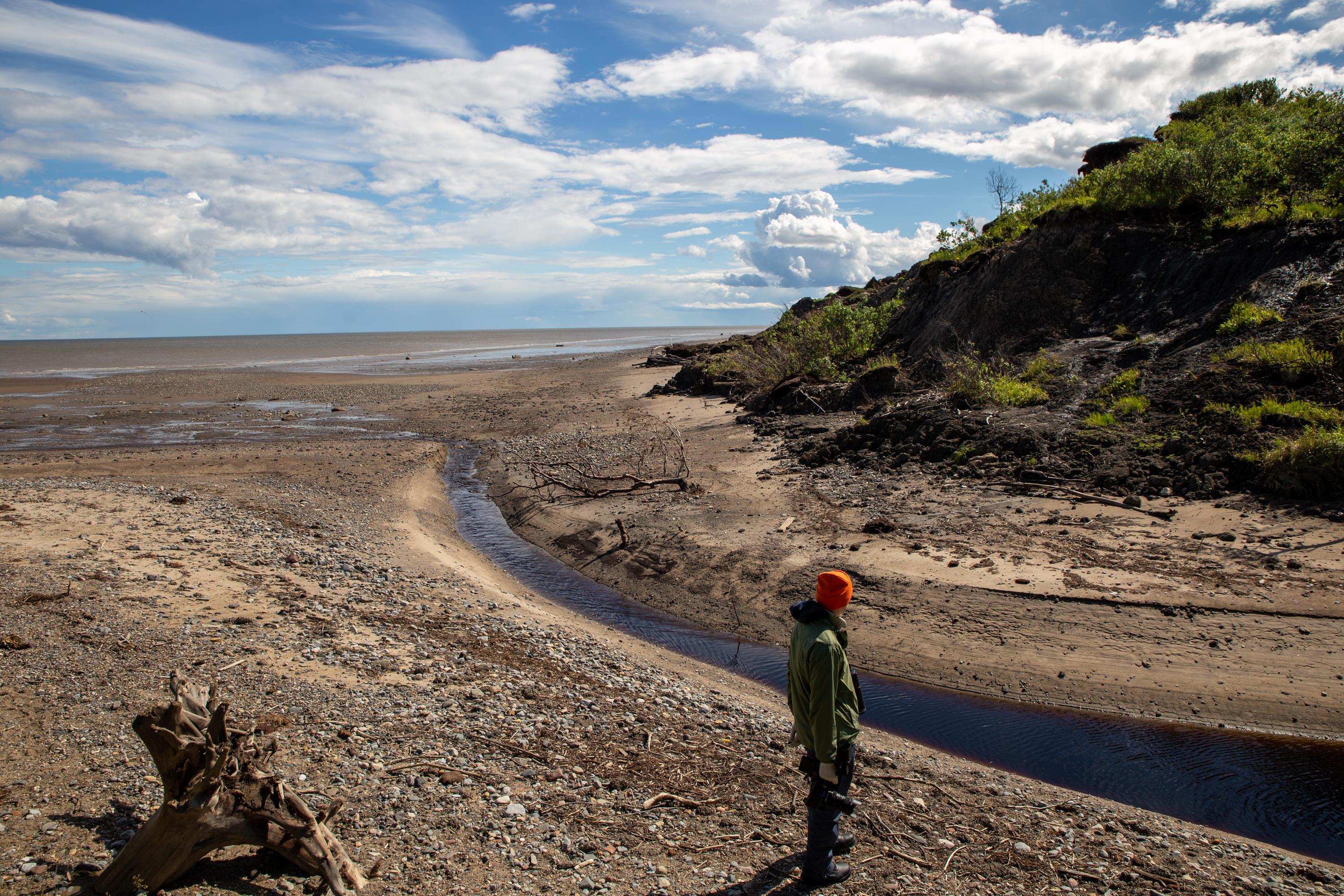 Отмели песчаные, широченные — убегают вдаль насколько хватает глазу. Белеет выглаженный морем плавняк, виднеются измерительные рейки метеорологов, уходящие в море. Белое море дышит, питаемое Северным Ледовитым океаном; прилив подмывает берег. Коричнево-черные пласты земли оседают широкими уступами; торфяник наверху весь в широких трещинах, провалах, промоинах.