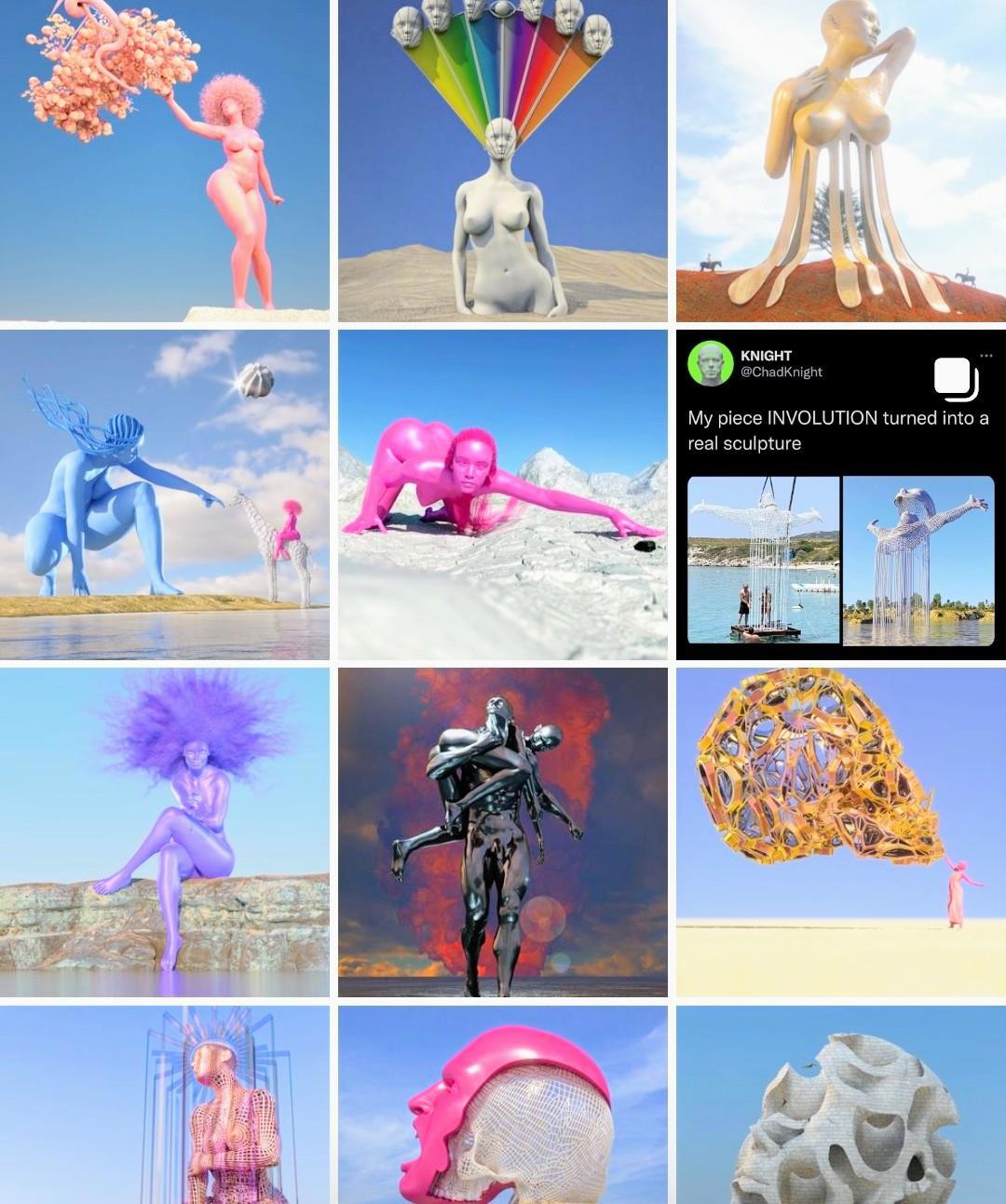 Давайте представим, что скульптуры реальны и просто полюбуемся его работами.