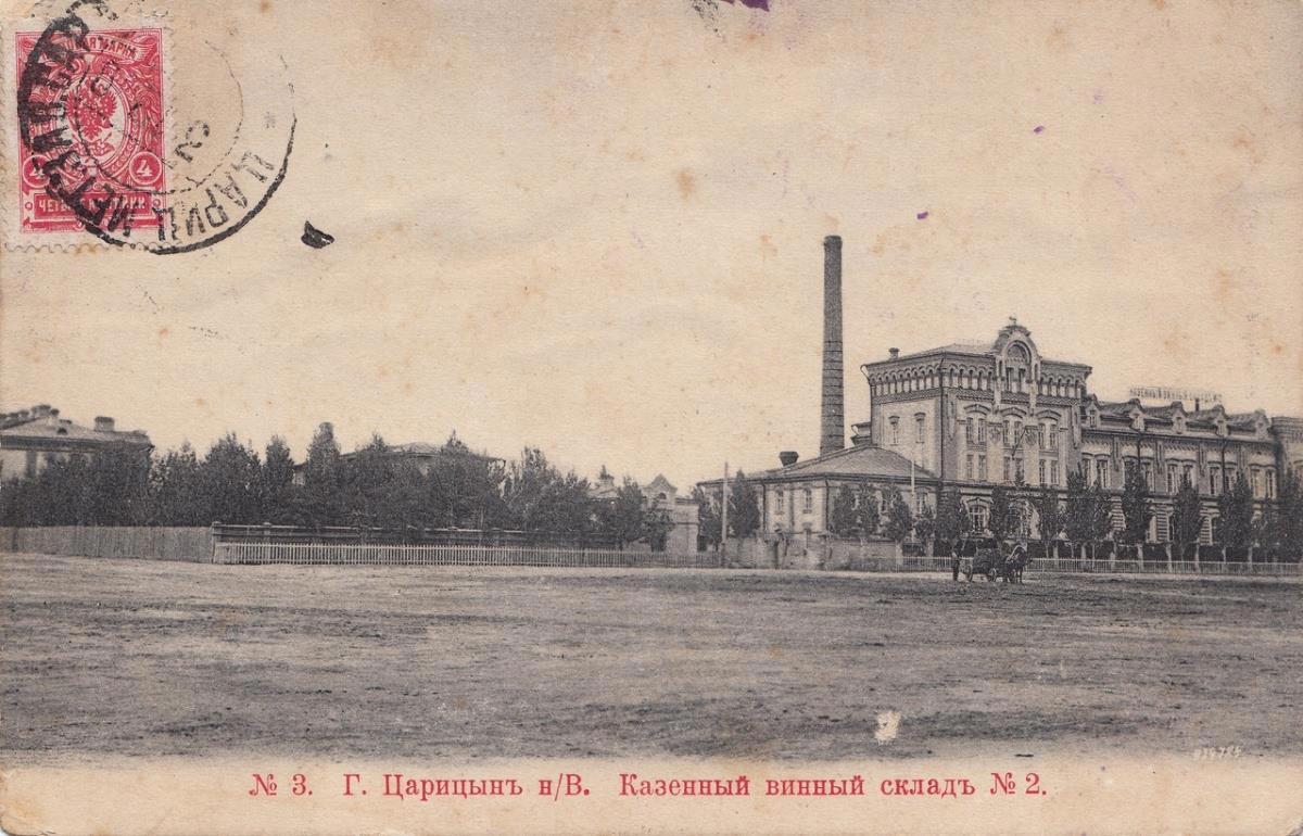Напомним, Казенный винный склад №2 – сохранившийся до наших дней памятник архитектуры по улице Пархоменко 1,(ранее – Донская). Это здание было построено в 1899 году и было украшено стилизованными изображениями колоса. Винные склады до революции фактически являлись государственными ликёроводочными заводами. Строительство Казённых винных складов было заметным проектом для Царицына – здесь были возведены не только производственные помещения, но и жилые дома для рабочих. Масштаб производства для тех лет был очень велик – на складе работало 150 человек.