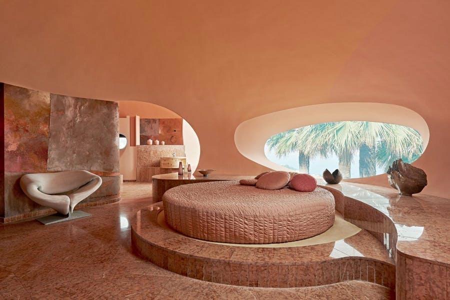 Знаменитый своим лабиринтом соединяющихся пузырчатых капсул [название отеля напрямую переводится как Дворец пузырей], дизайн Palais был вдохновлен древними пещерными жителями и плавной формой женского тела.