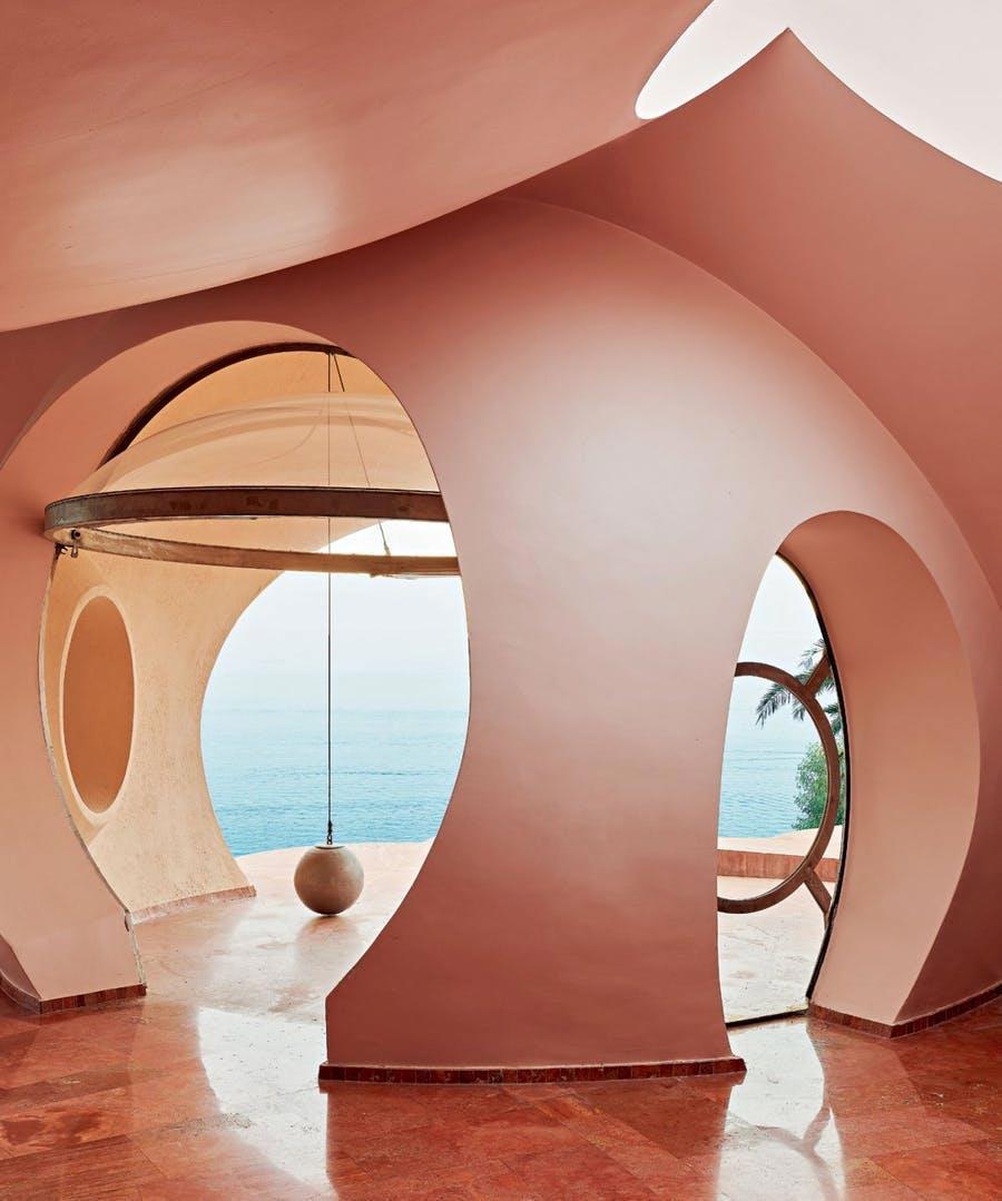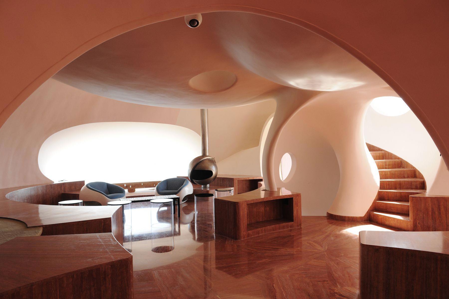 Фирменный знак его архитектора Антти Ловага, который считал резкие линии “агрессией против природы”, — “округлый" дом был первоначально построен в 1979-1984 годах, а затем был куплен Пьером Карденом в конце 80—х годов в качестве выставочного центра и летнего дома.