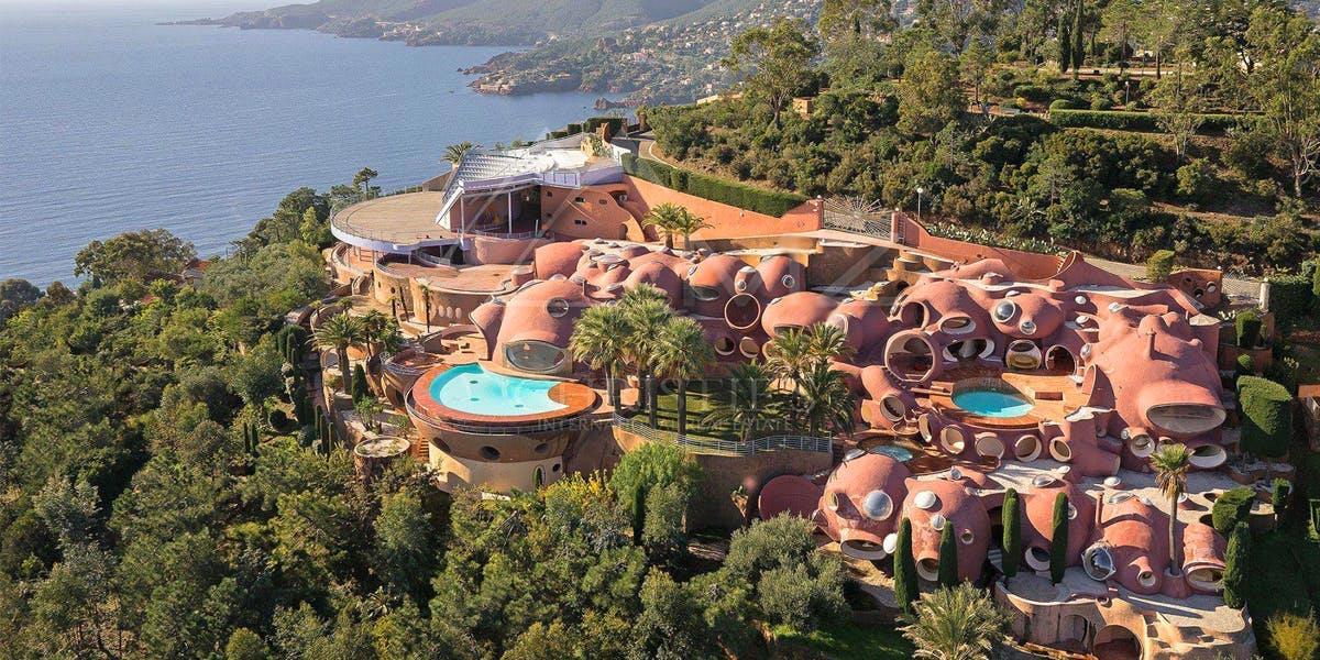 Дворец Буллес расположен на фоне скал Теуль-сюр-Мер на Французской Ривьере, имеет водопады, пруды и бассейны площадью 12 917 квадратных футов, но не содержит ни одного прямого угла.