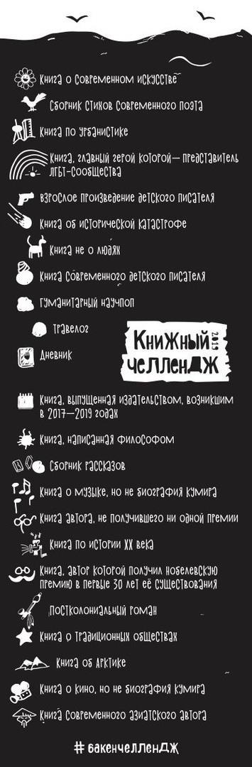 Книжный магазин "Бакенбукс" объявлил на 2019 г. книжный челлендж, который предлагает немного расширить свои читательские интересы.