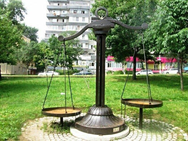 Весы - звездочет с весами в руках, на одной чаше - гиря, на другой - перо. Перо тяжелее :)