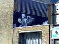 Граффити «Автостопом куда угодно» (Hitchhiker to Anywhere, 2005, Арчуэй, Лондон) (Чарльз Мэнсон в тюремной одежде).