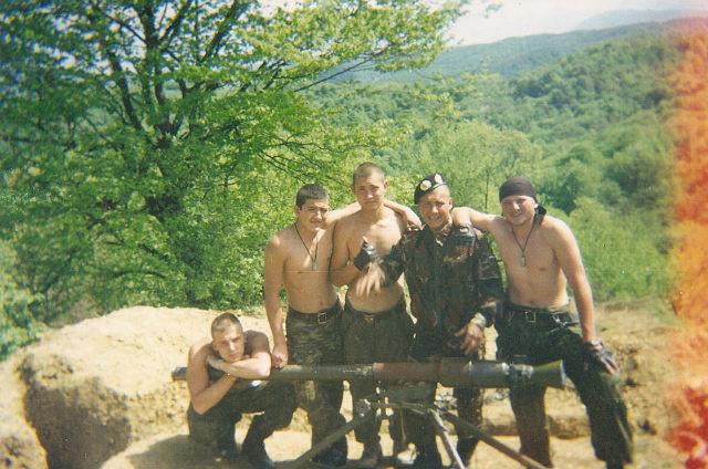 Вон он, Саня, обнимается со стволом СПГ, а рядом стоит явно собирающийся домой Атаман в натовке и берете. А ещё там есть Хома, последний оставшийся сержант призыва 1-98 по состоянию на весну 2000-го. И шелестит свежей весенней зеленью мая двухтысячного года лесок вокруг Ведено. Мы были молоды и война казалась нам хорошей знакомой.