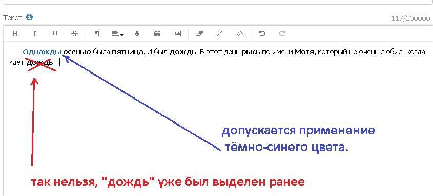 Оставшиеся пункты заказа (помимо жанров) выделяете в тексте рассказа жирным шрифтом (один раз для каждого пункта!) или жирным шрифтом тёмно-синего цвета, как одного из наиболее благоприятных для чтения.