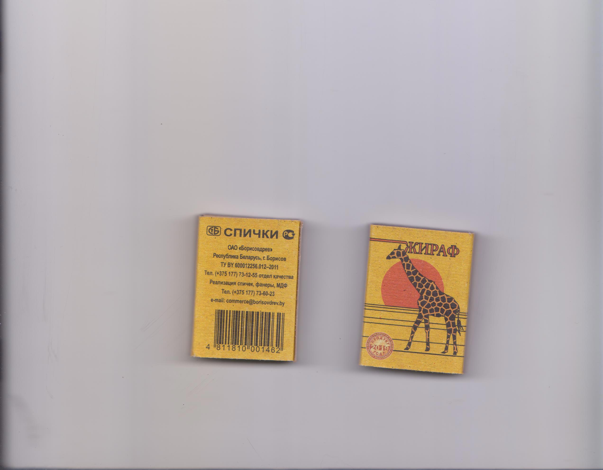 "Ни шиша себе! - говорю. - У вас здесь сплошь импорт!" - и слышу в ответ, что у них в посёлке, в единственном магазинчике, сейчас только такие продают. Ради любопытства, уже вернувшись в свой городок, купила спички: точно такие же - белорусские жирафы.