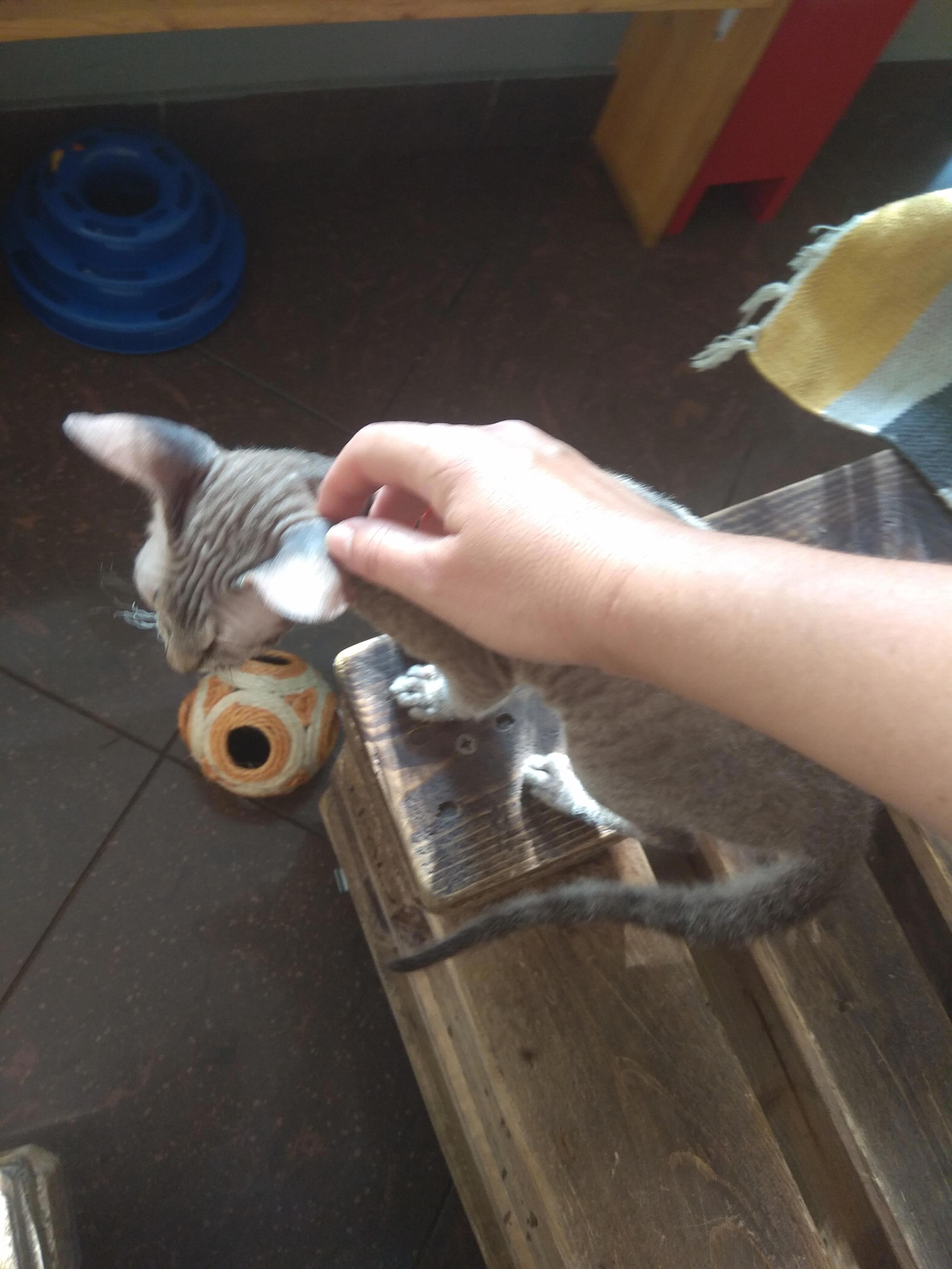 Больше к нам никто на колени не лез. Пришли сфинксы-малыши на край стола. Дочка принялась их гладить и фоткать. Печенье было очень твердым. Наверное, чтобы посетитель подольше его жевал и тянул резину. Я поняла, что нам ни за что не справиться с этими деревяшками за пятнадцать минут, пожалела, что так много набрала съестного, сложила это добро в дочкин рюкзак, мы мигом допили кофе и пошли приставать к котикам сами.