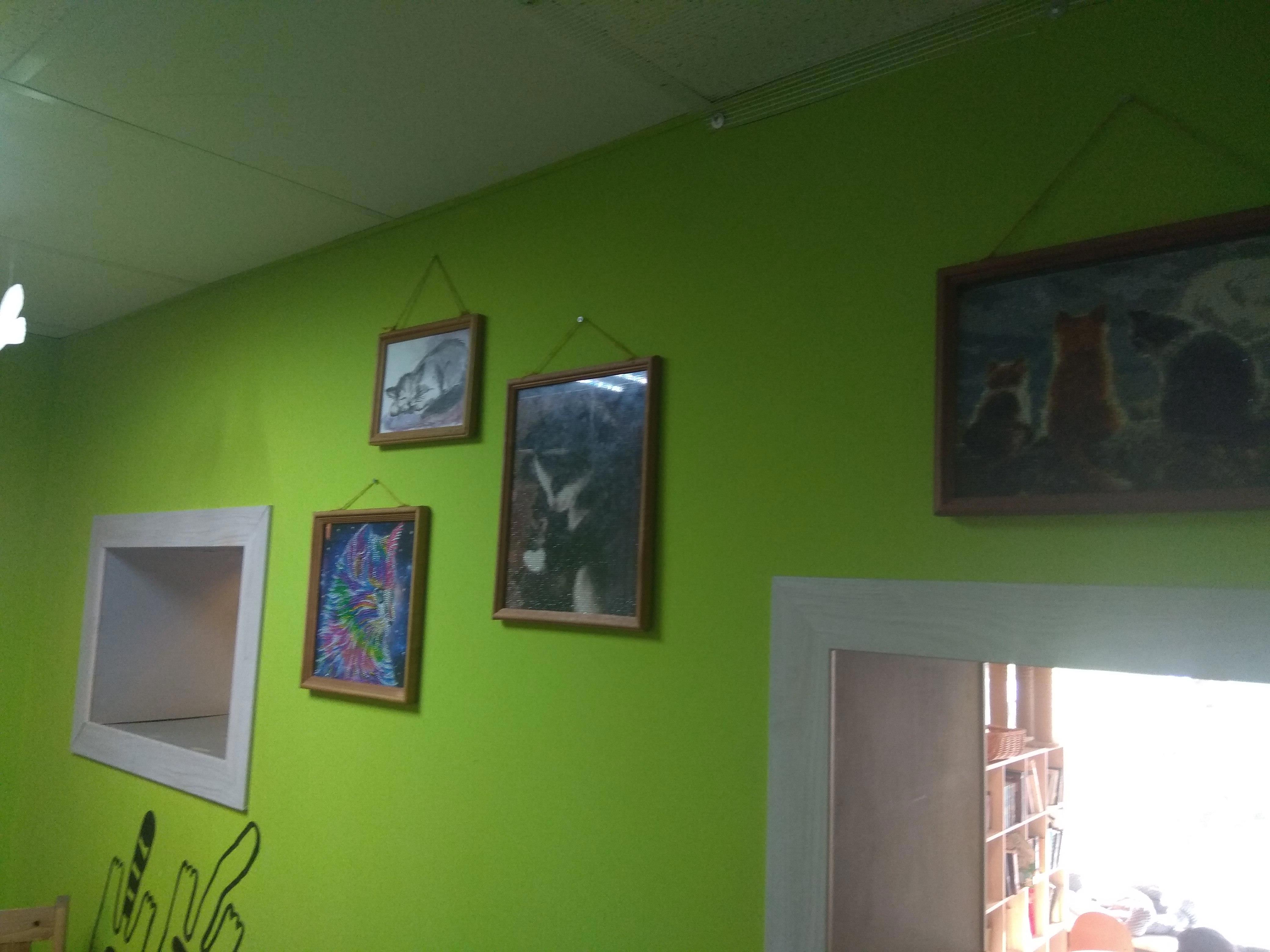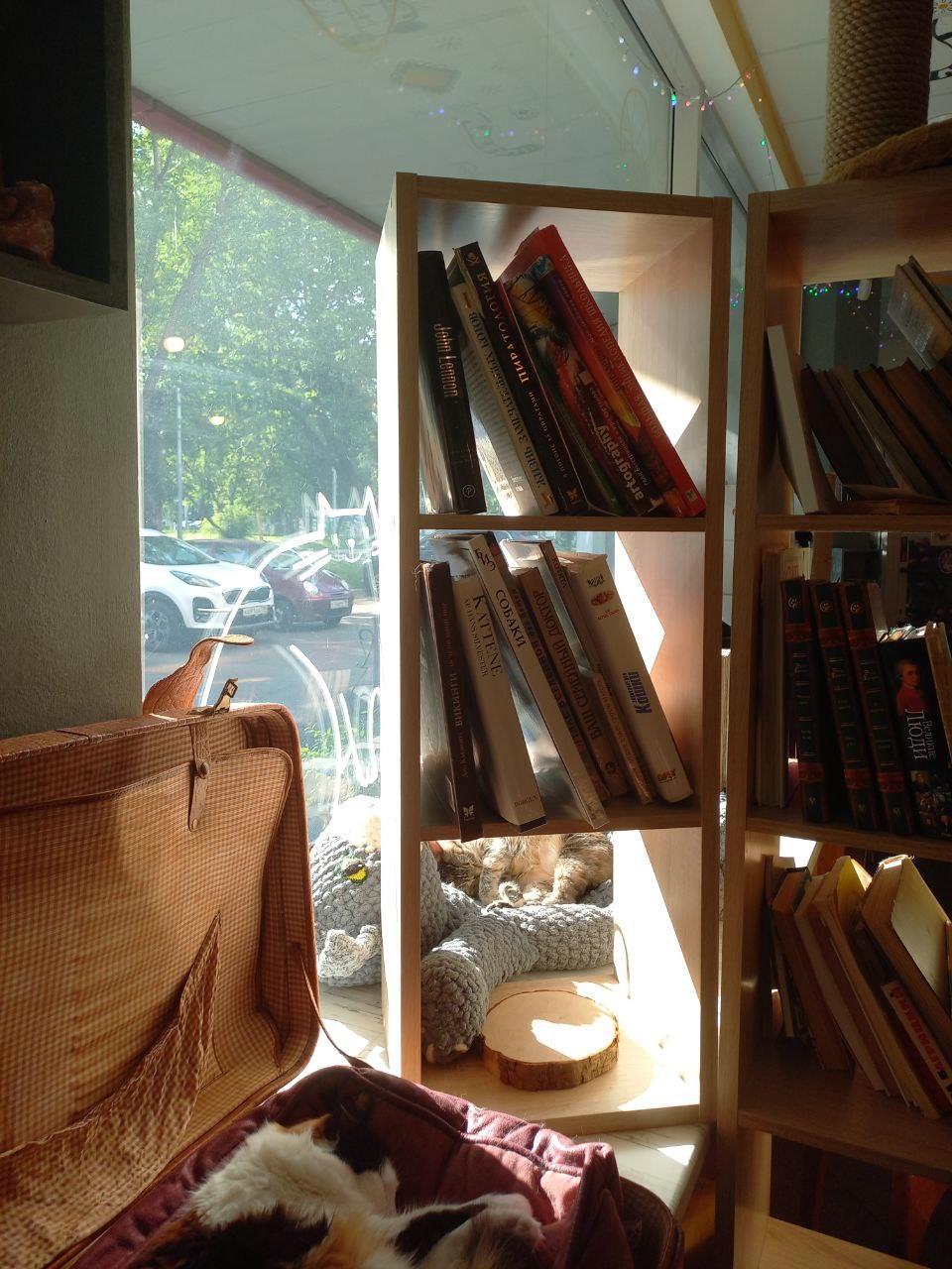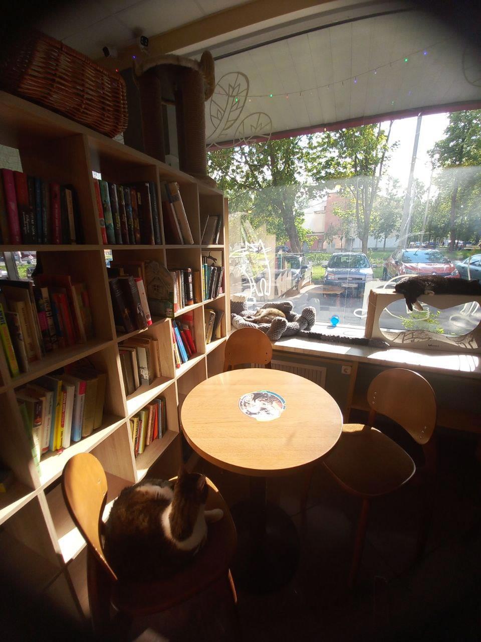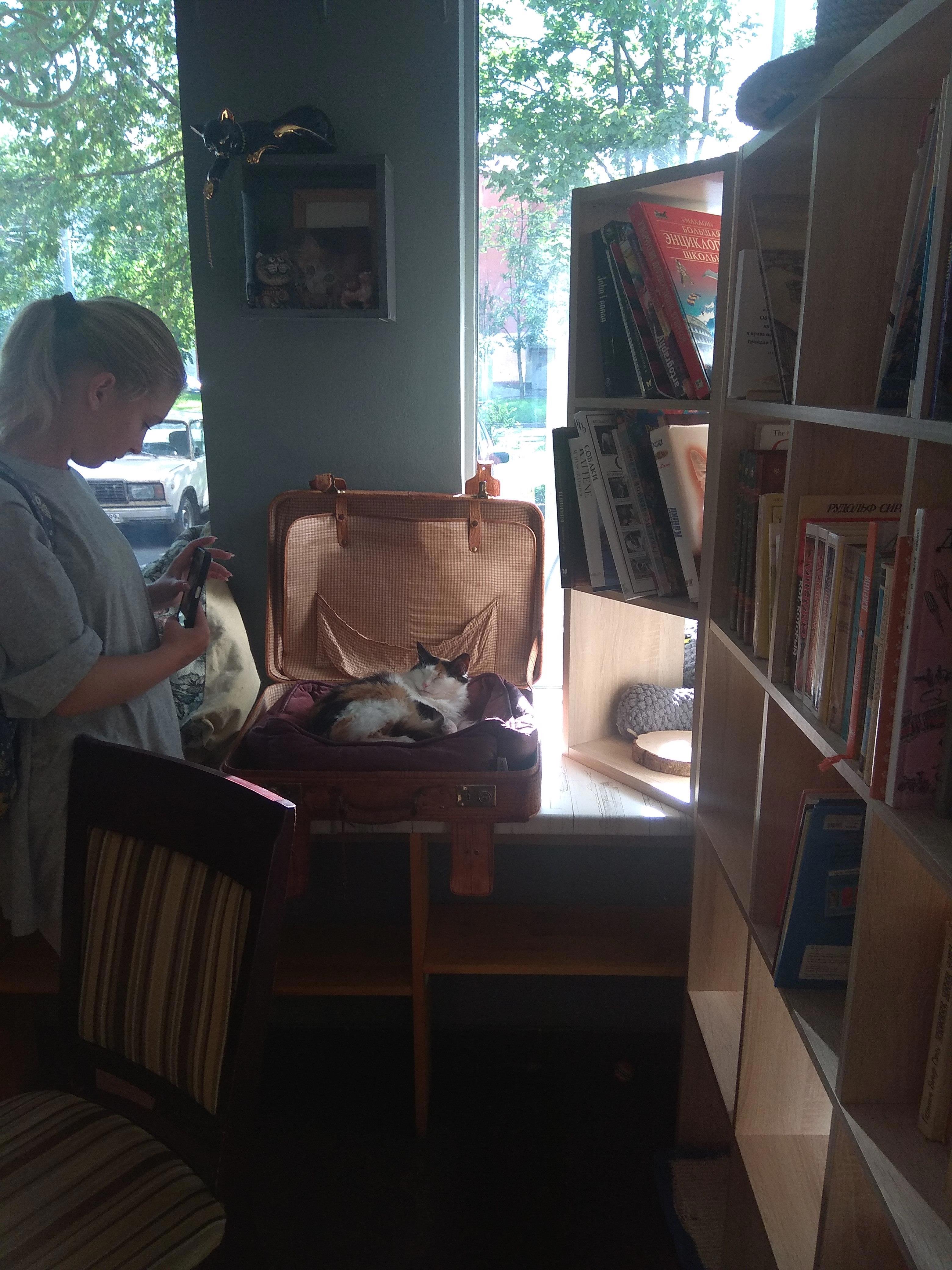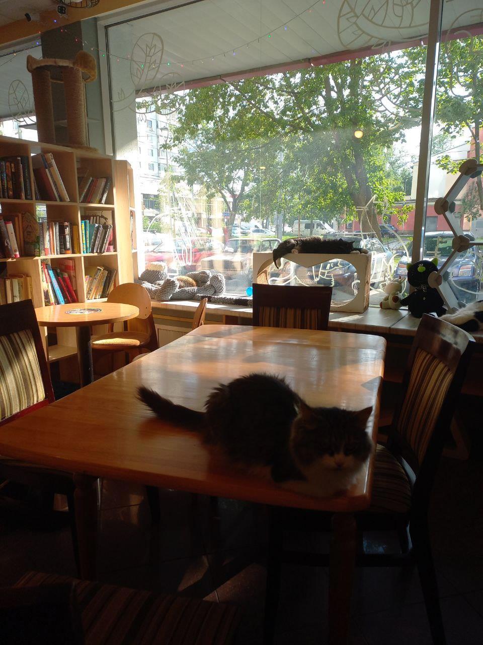 Когда-то давно я жила и работала в этом районе. Часто ходила мимо, но никогда не заходила в это кафе. Хотя и было любопытно, что это и с чем его едят. Думала, там все проще. На широких подоконниках дремали живые кошки, казалось, просто для антуража. А зашли -- мамочки!