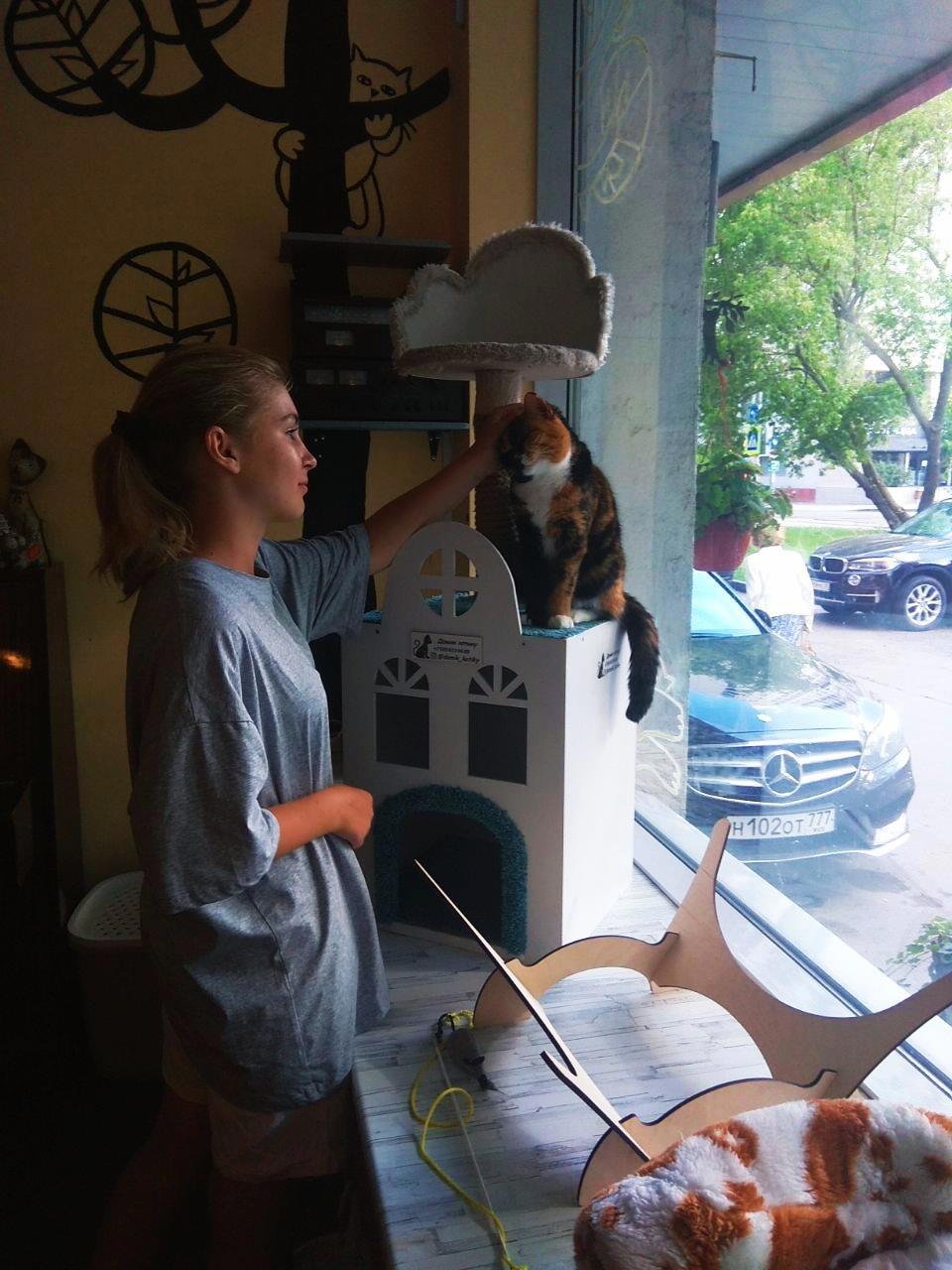 !) Хотели уже "домой" ехать, и тут я вспомнила про это заведение. А поскольку моя дочь та еще кошатница, не удержалась, показала ей это необычное кафе.