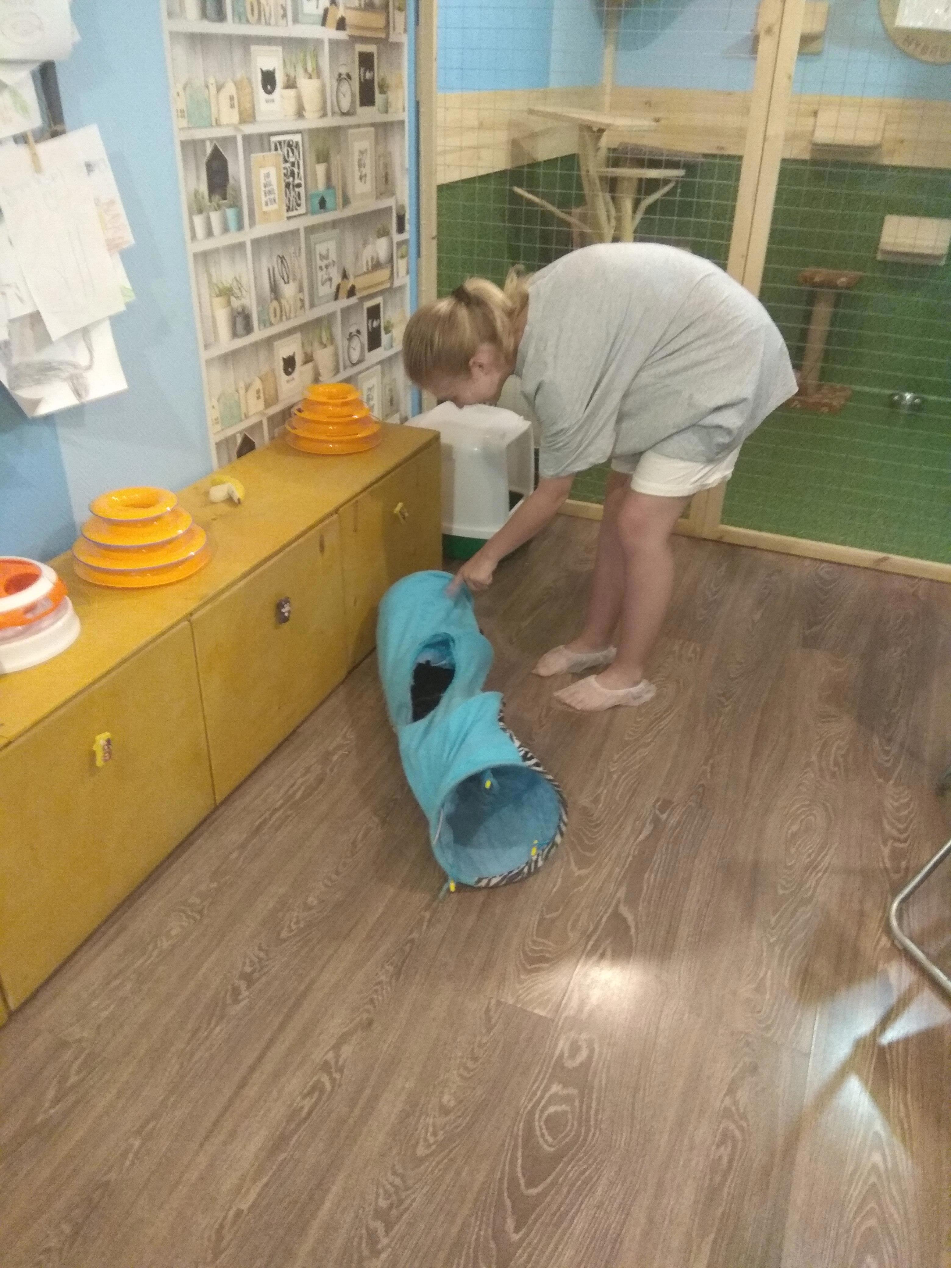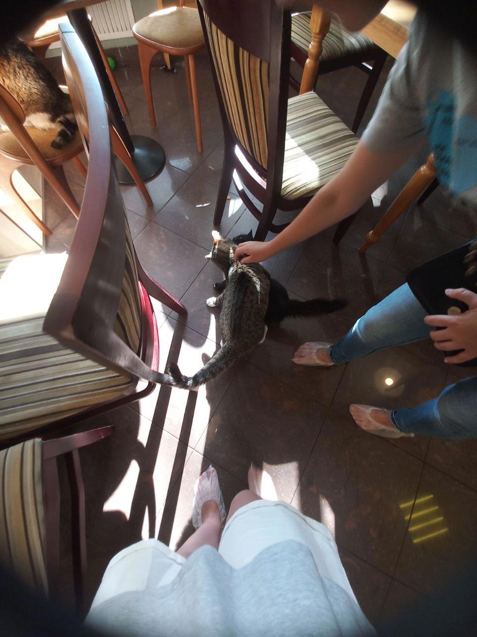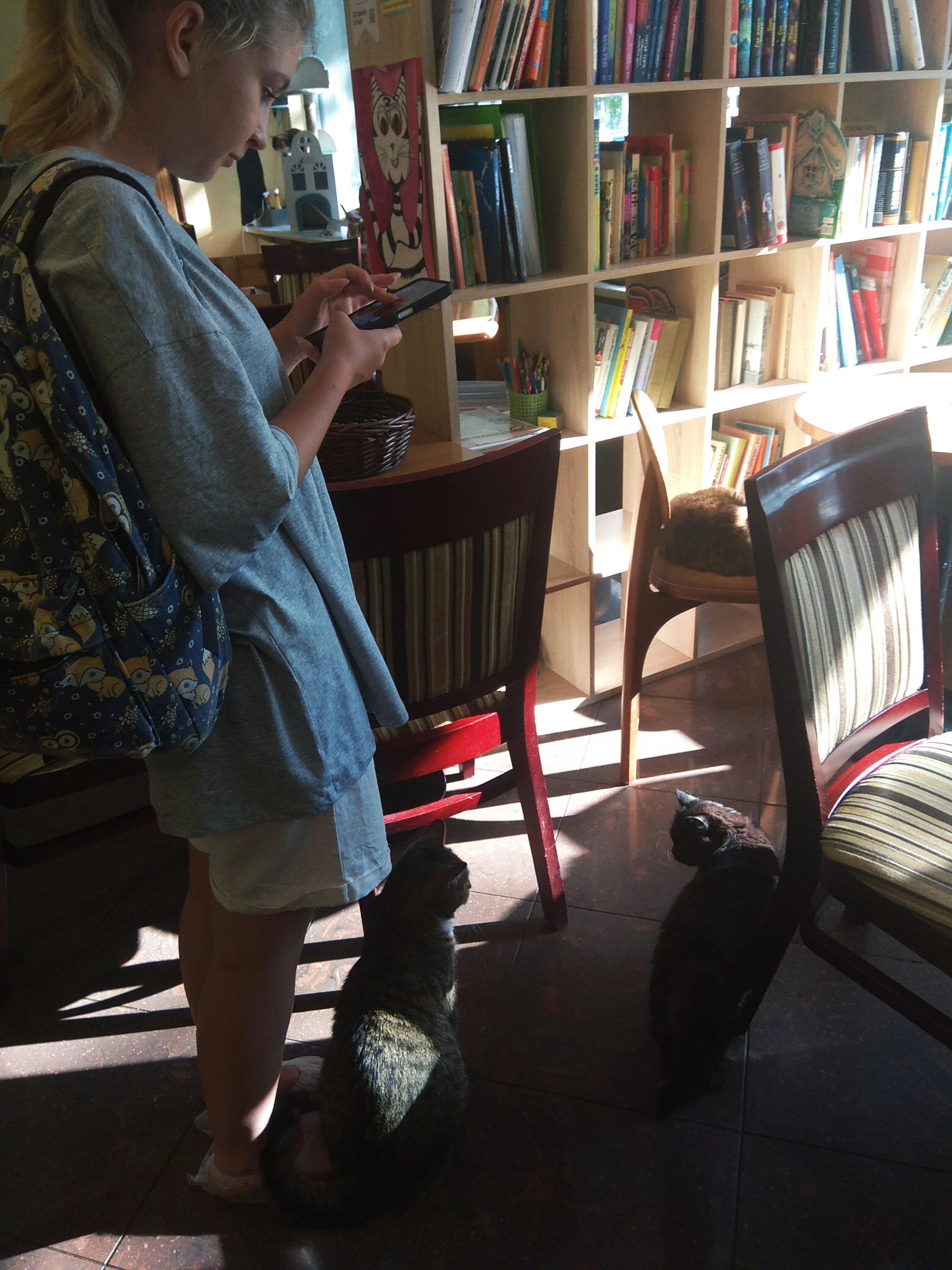 Надо отдать должное, когда мы сказали администраторше "стоп", она наше время остановила, хотя перед нами и стояла очередь людей на кассу. Еще и разрешила, пока мы ждем, погладить и пофоткать котиков, до которых мы так и не дошли.