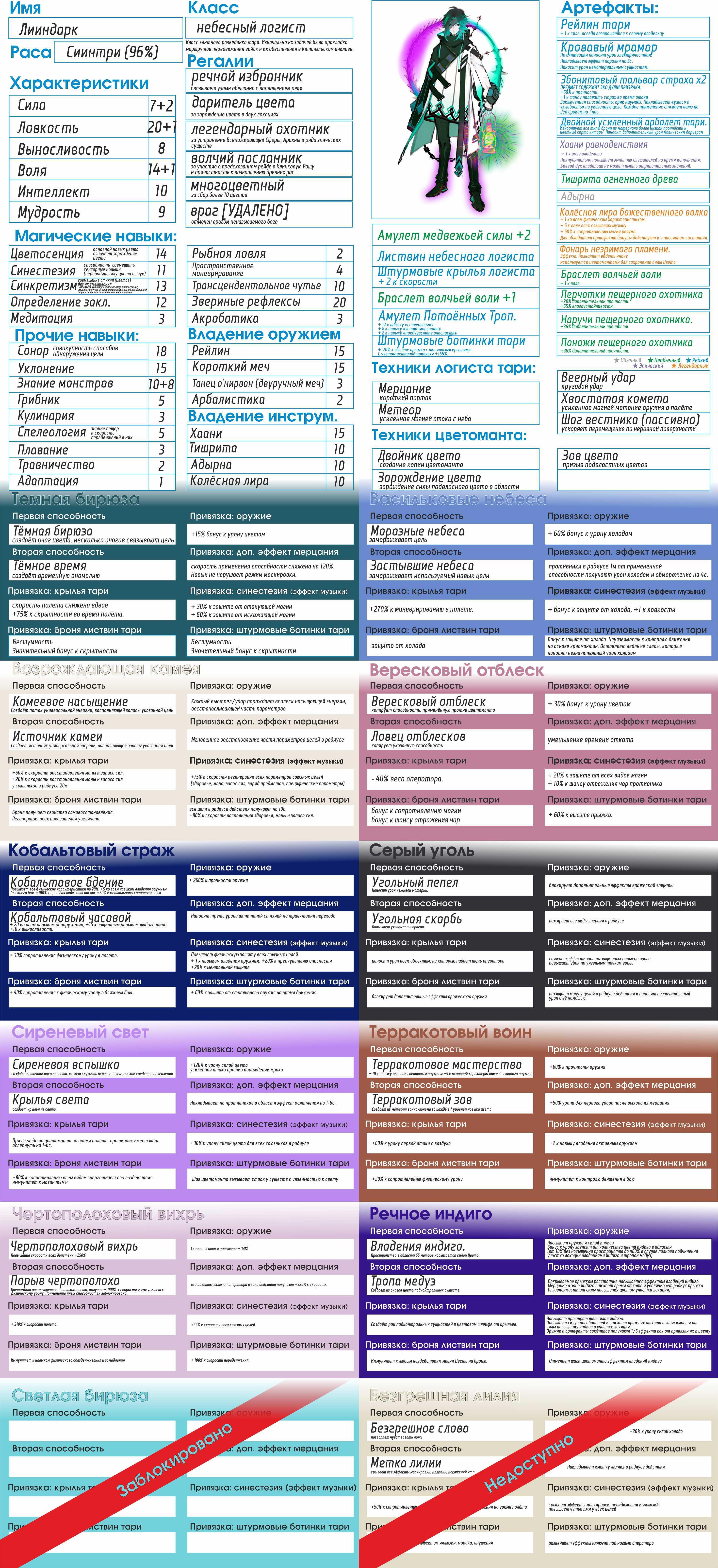 И ещё вот это - примерно так выглядят параметры Лииндарка и доступные ему способности на момент начала событий пятой книги. (кто не читал первые четыре - будет спойлером)