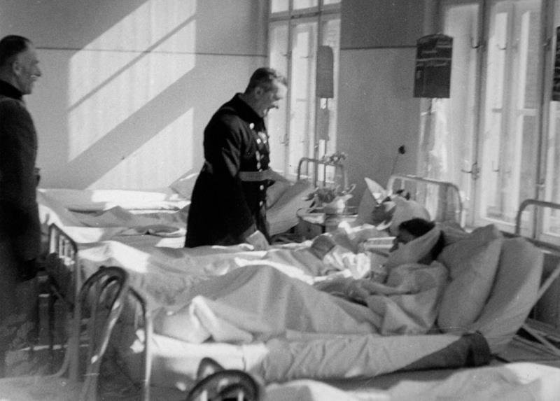 Регент Венгерского королевства адмирал Миклош Хорти (Miklós Horthy) посещает в госпитале солдат, раненных в боях с защитниками Карпатской Украины в Чехословакии. Именно венграм было оказано самое ожесточенное сопротивление, но не регулярными войсками а ополчением Подкарпатской Руси.