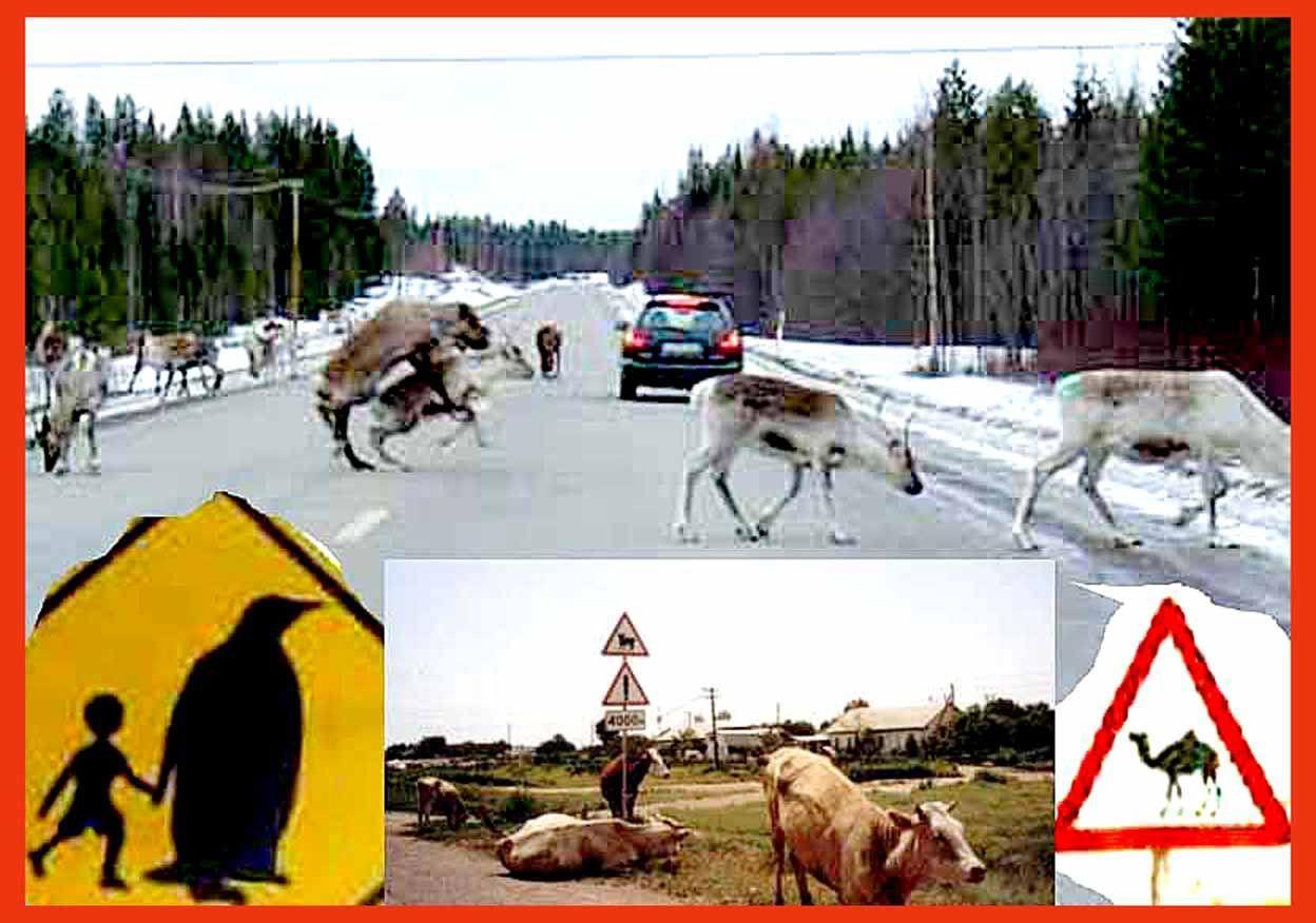 «Проехав за долгие годы жизни по дорогам многих стран, в силу своей специальности я постоянно отмечал наличие дорожных знаков: «Осторожно, переход диких зверей». Наличие таких знаков — это штрих, говорящий о культуре страны, о сбережении ее природы для потомков. Знак, предупреждающий о возможном появлении животных на дороге, в России обычно изображает корову или оленя. В Израиле на знаке изображен верблюд.