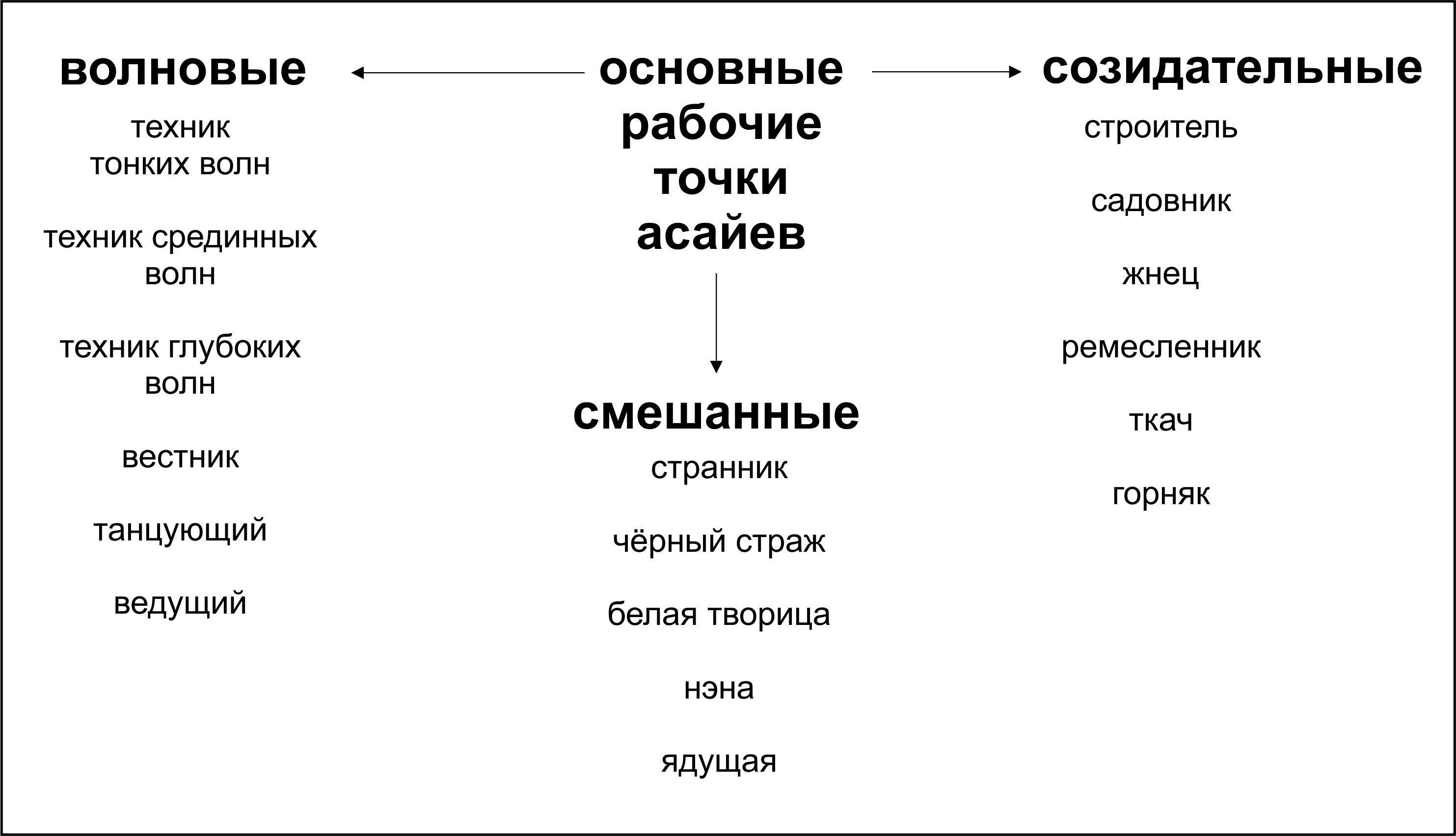 Янфо: Можно я начну? Видите, большинство рабочих точек делится на две большие категории — созидательные и волновые! Главное их отличие в том, что созидатели трудятся с плотной материей — пылью и простым веществом, а обладатели волновых точек — с волнами. Я как строитель отношусь к созидателям. И мы все вместе создаём всё многообразие материального мира вокруг нас! Начиная от асайских звёзд и заканчивая чашкой для пасоки!