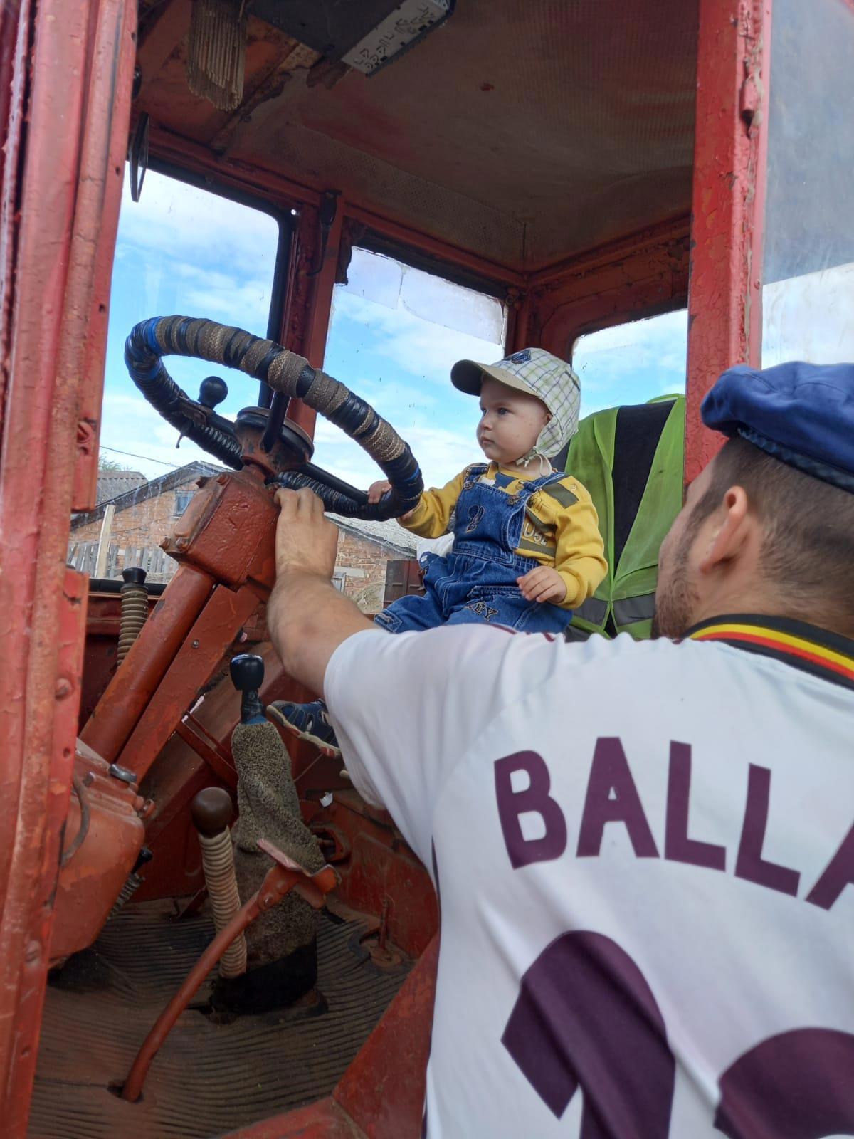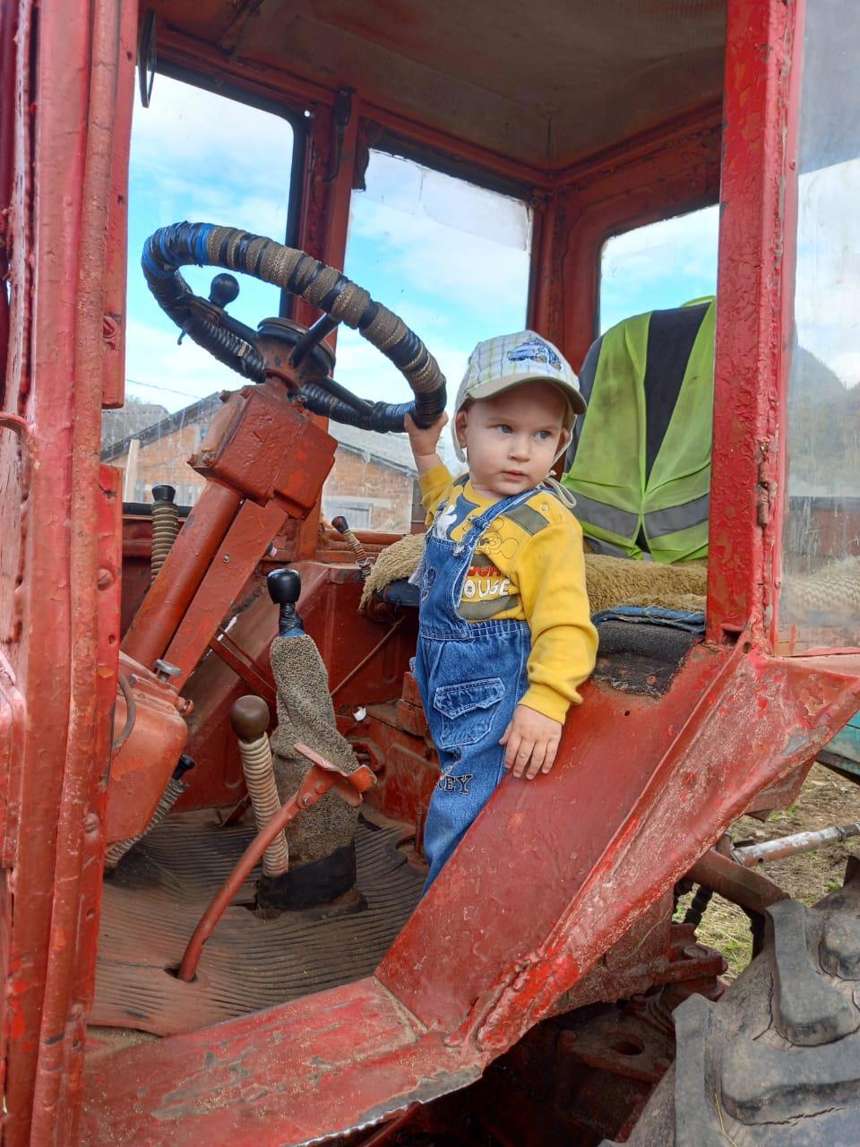 Синий трактор не идет не в какое сравнение с деловым красным и синим трактором. От деда вчера было не оторвать.