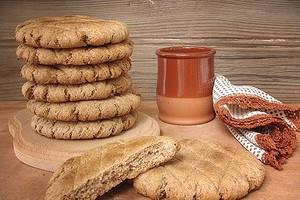 Поставить опару из тёплого молока, размешанного с дрожжами, и ½ нормы ржаной муки. Дать подняться, прибавить тёплое масло, соль, яйца и оставшуюся ржаную муку. Замесить тесто, дать вторично подняться, тонко раскатать. Вырезать лепёшечки, положить на лист, смазанный маслом и посыпанный мукой, наколоть вилкой, смазать маслом, посыпать тмином. Выпекать в духовке до готовности.