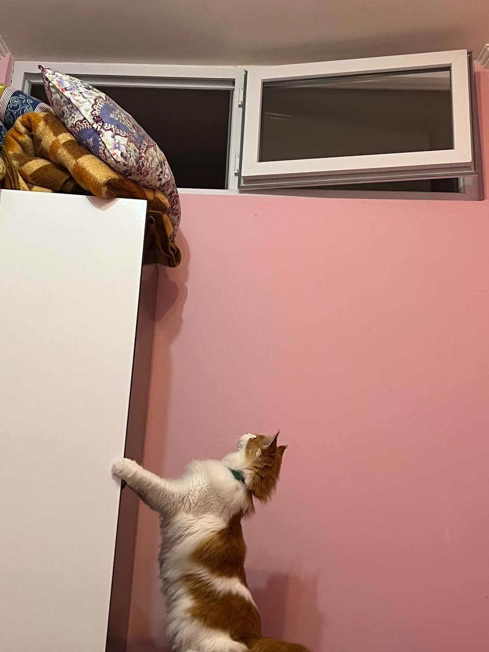 Если Кнопку запереть в спальне, она прицеливается к окну под потолком