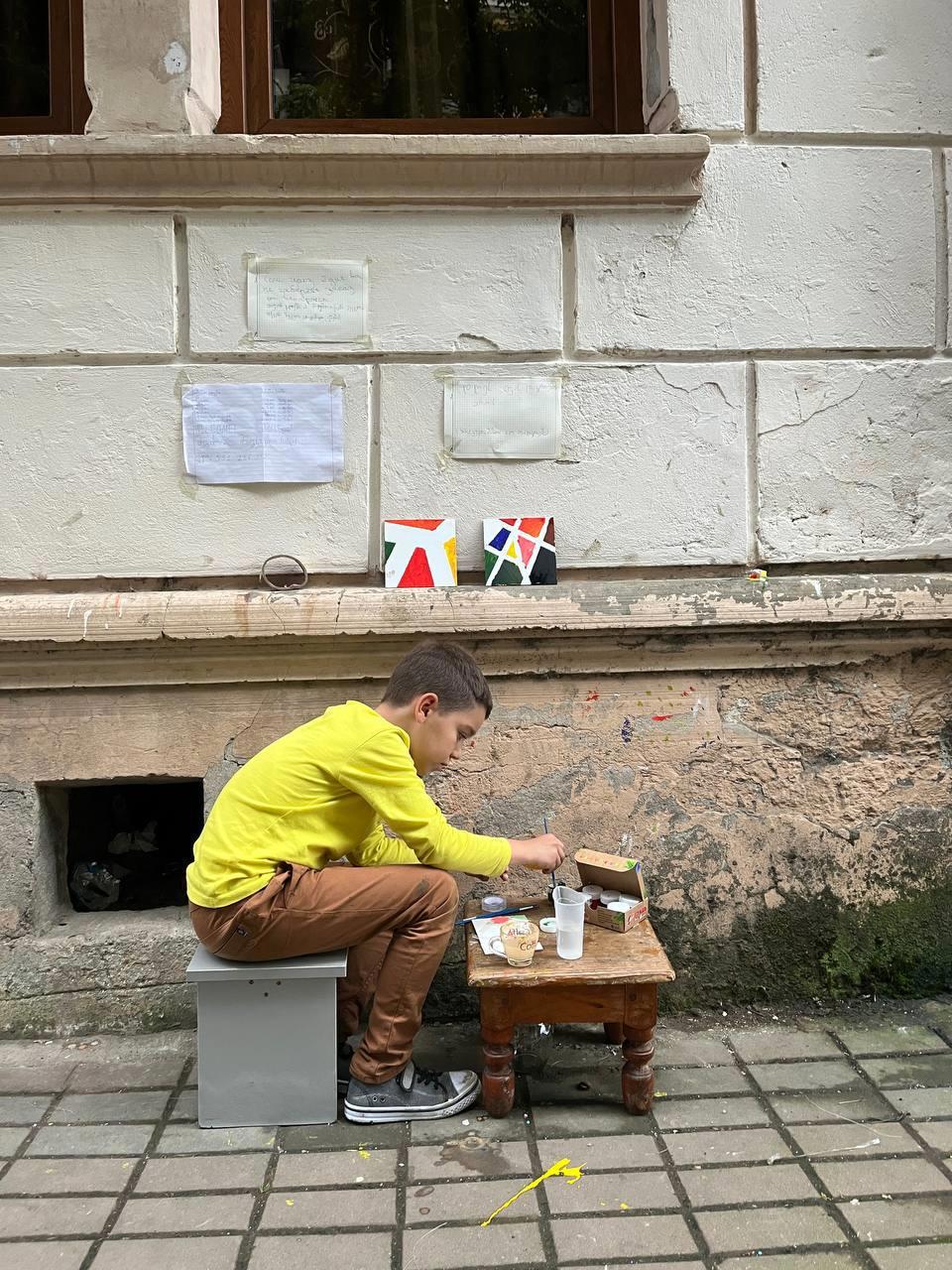 А вот уже мальчик, который свободно владеет и русским и английским, продаёт свои творения в туристическом месте.